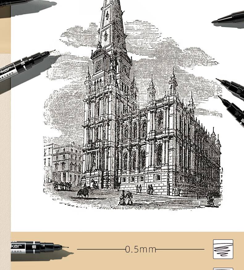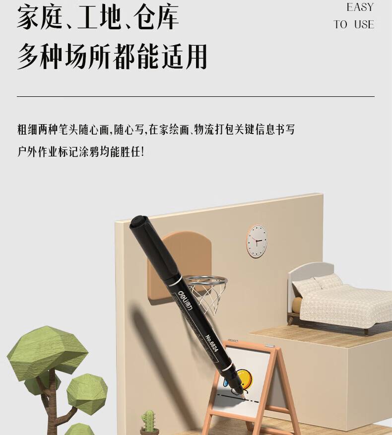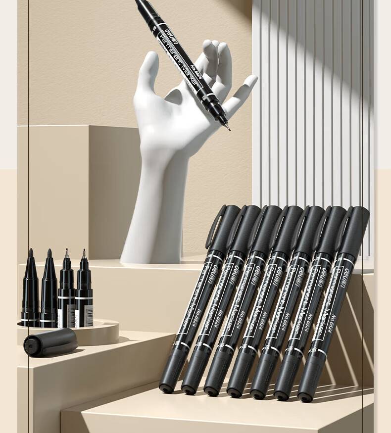 得力(deli)小双头油性记号笔 6824 勾线 、绘画、美术生专用描边