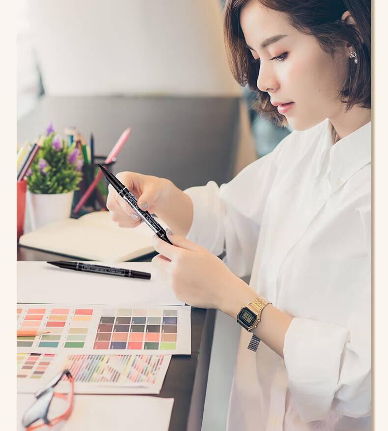 得力(deli)S563美术勾线 绘画笔,双头学生儿童描边笔【潮探款】