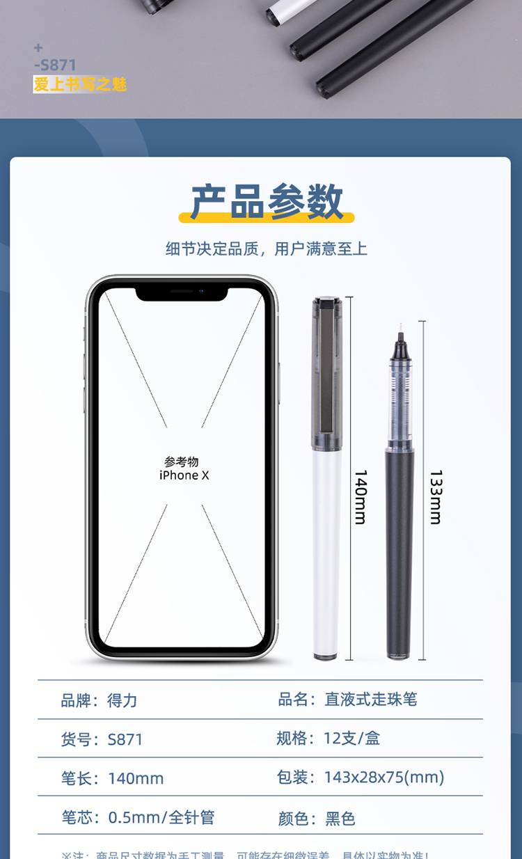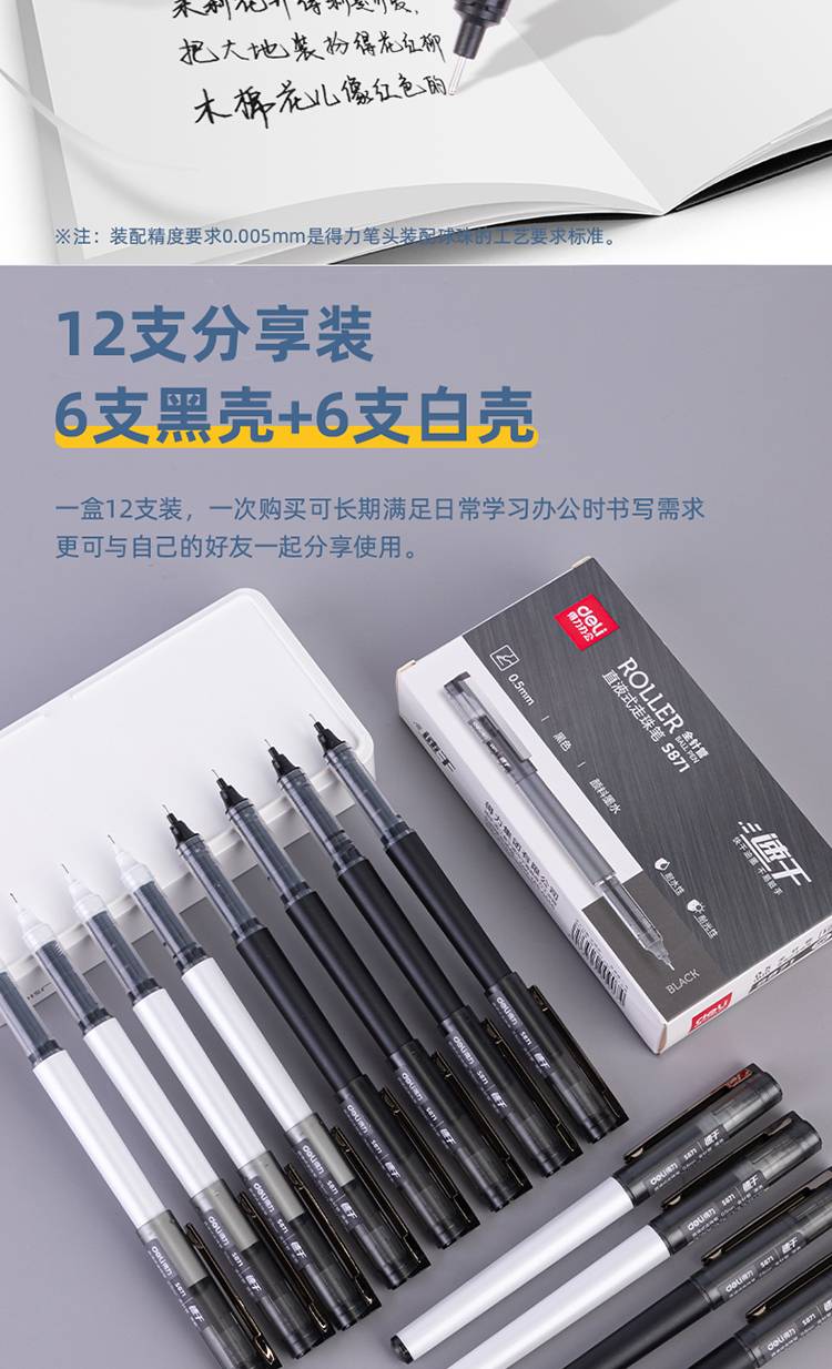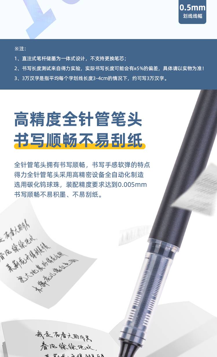 得力(deli)S871直液笔签字笔 0.5mm全针管办公商务中性笔走珠笔
