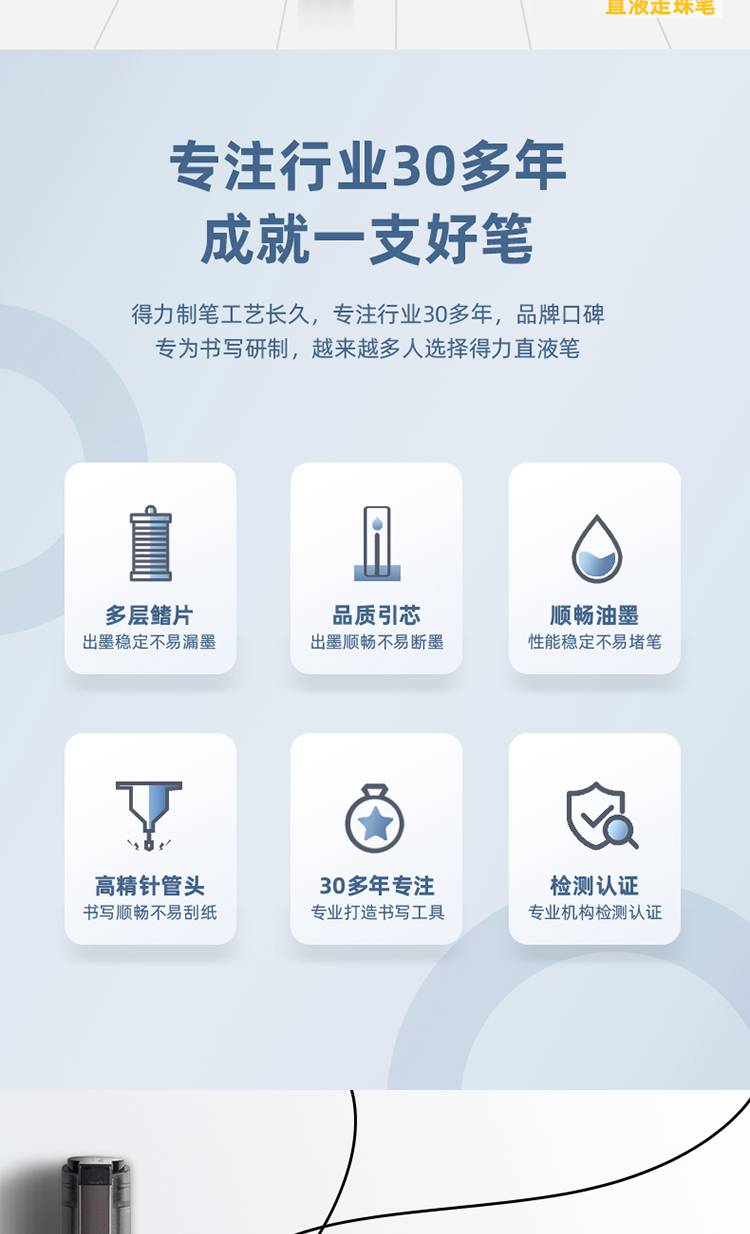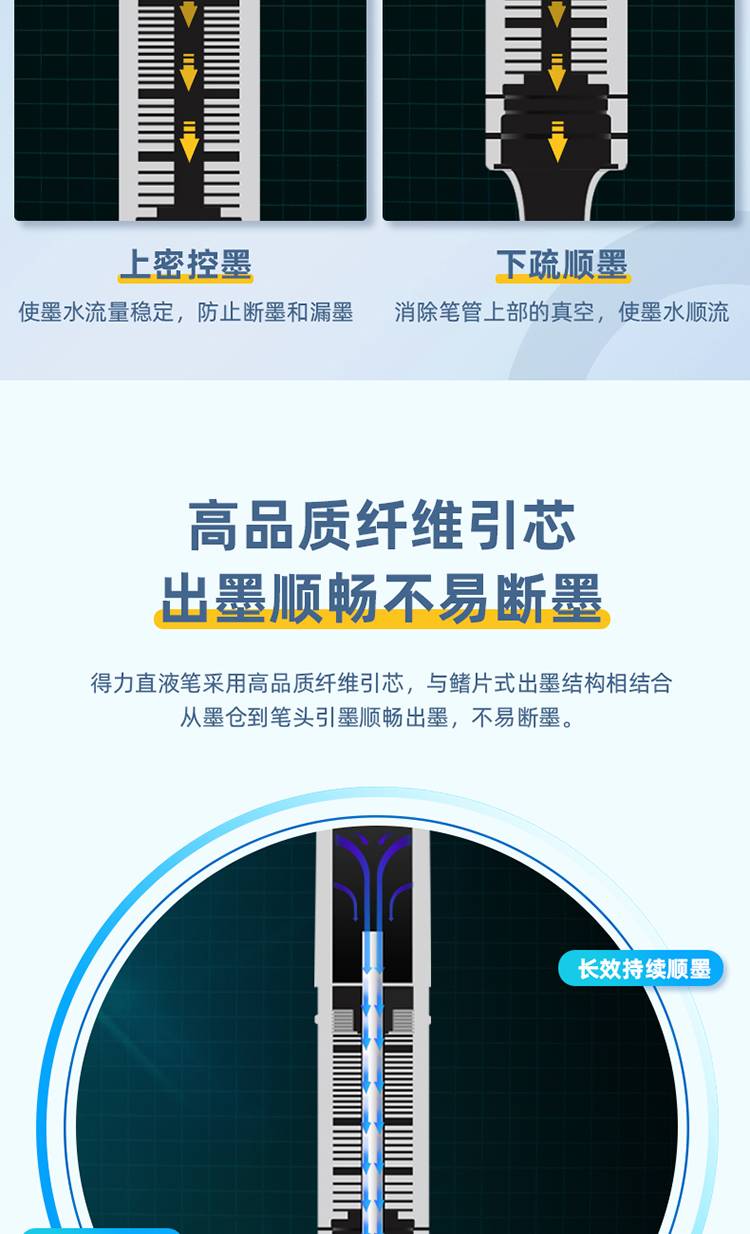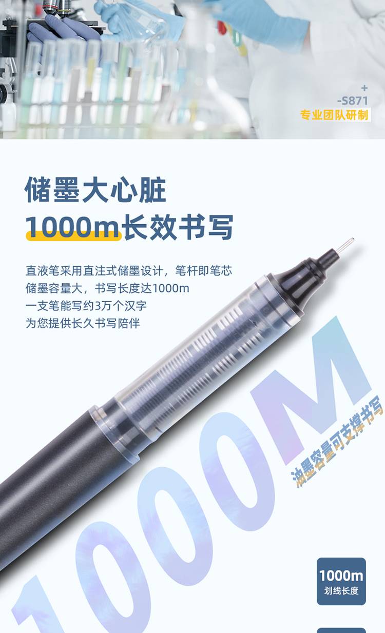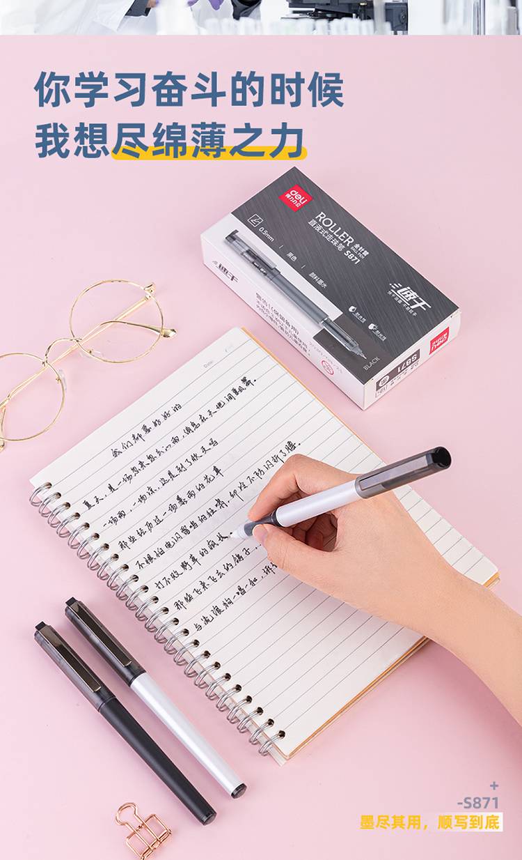 得力(deli)S871直液笔签字笔 0.5mm全针管办公商务中性笔走珠笔