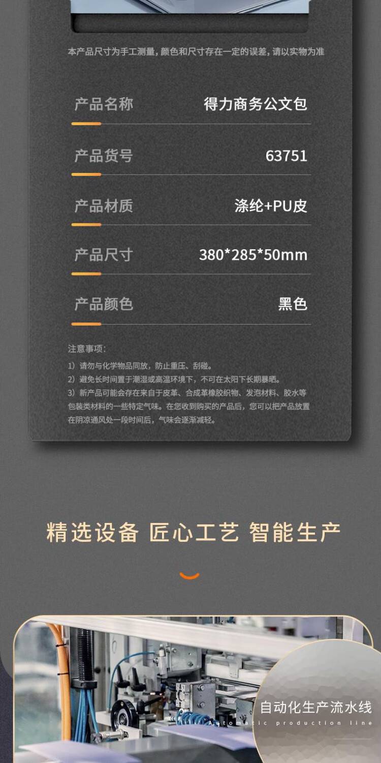 得力(deli) 63751 公文包电脑收纳包 商务拉链袋【差旅商务】黑色