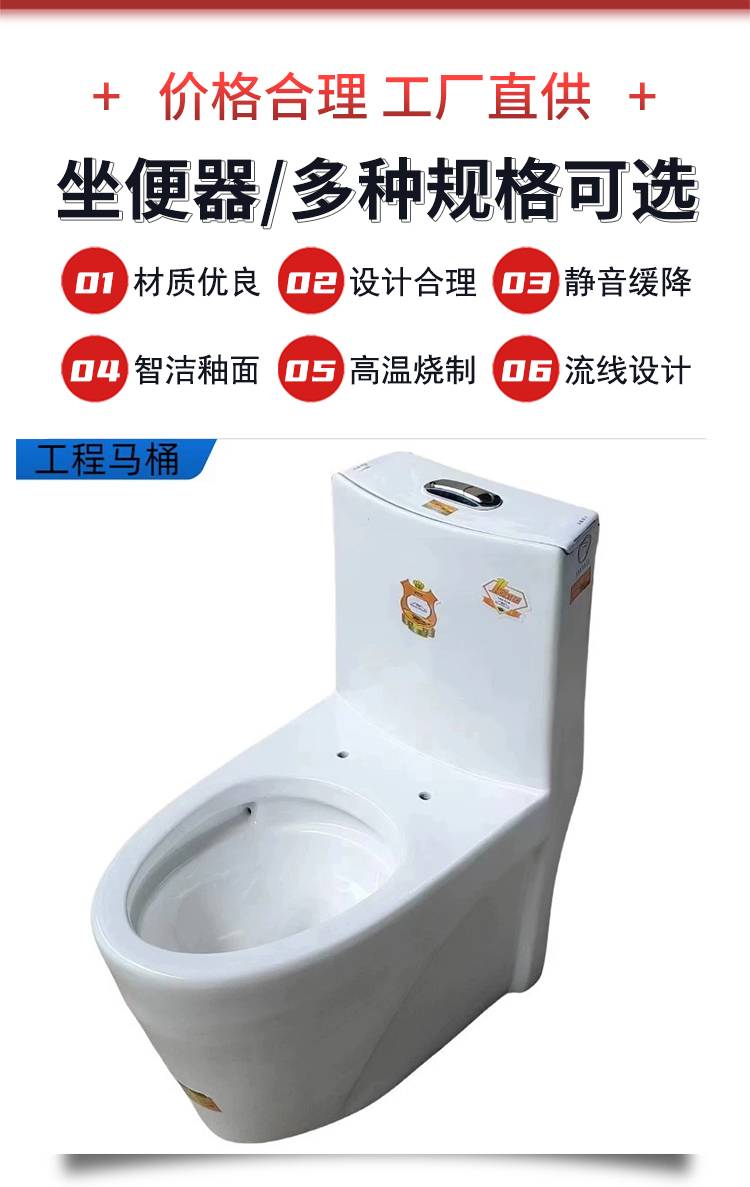 多功能陶瓷马桶 卫生间静音防臭坐便器 家用蹲便器