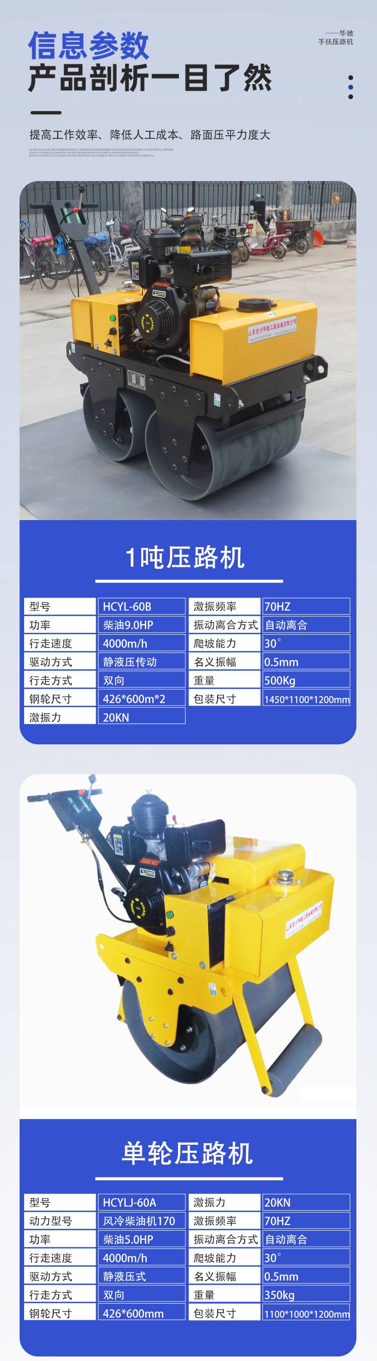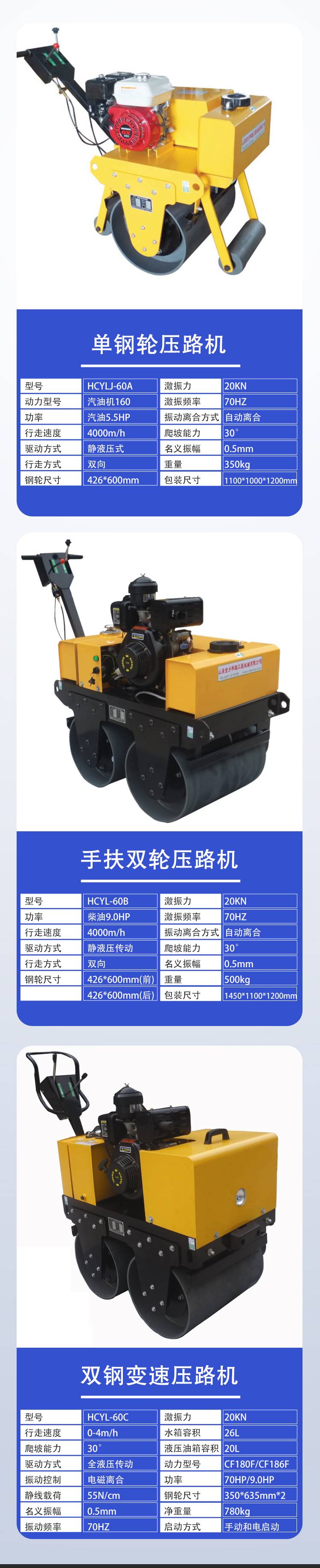小型双轮2吨压路机 手扶式震动压土机 草坪压实机