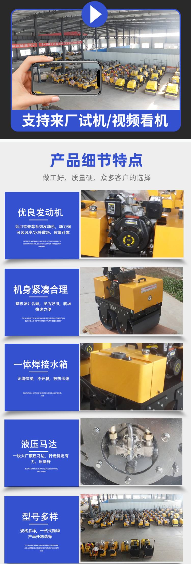 小型单轮压路机 加重大双驱震动压道机 占地小