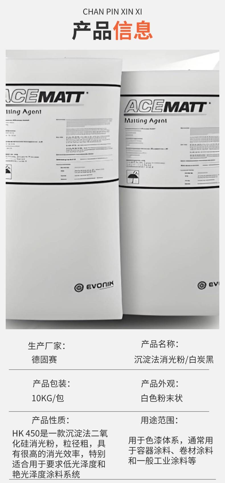 德固赛消光粉 ACEMATT® HK 450 沉淀法二氧化硅 涂料消光剂 白炭黑