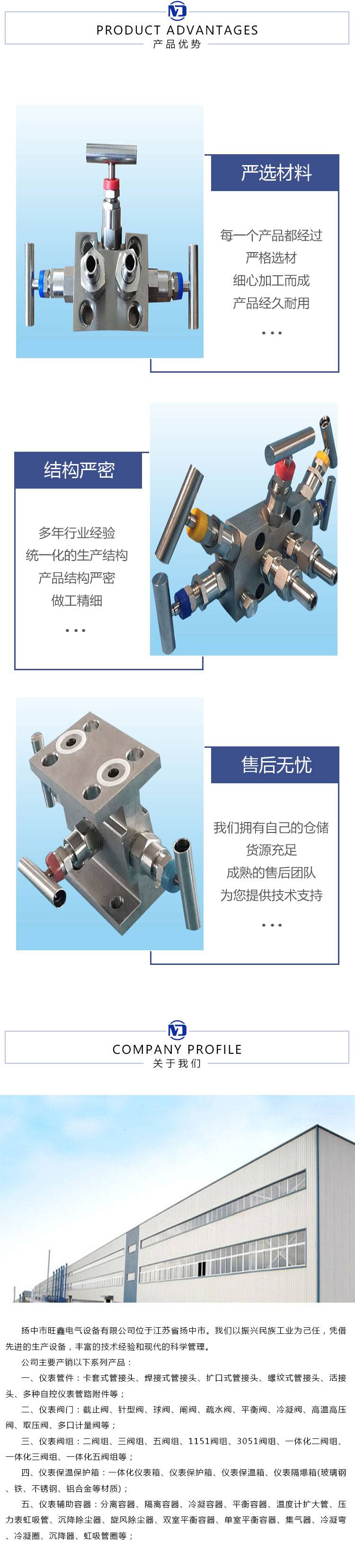 一体化三阀组 不锈钢内螺纹 仪表阀门 专业生产 旺鑫电气