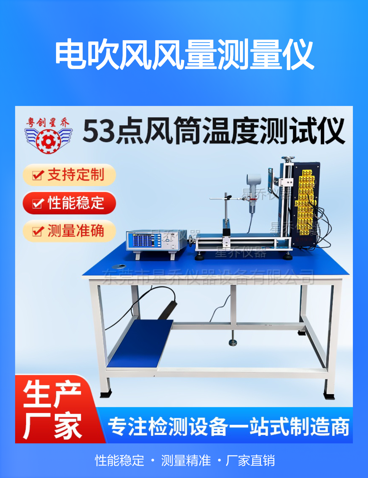 电吹风风量测量仪 风筒53点温度测试仪 吹风机温升试验装置