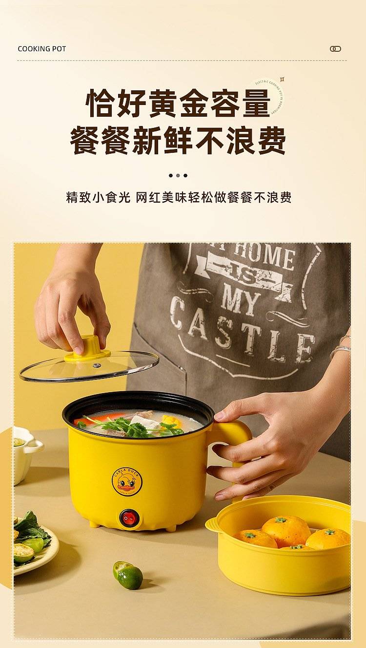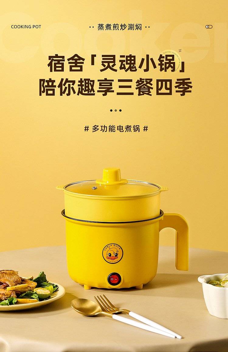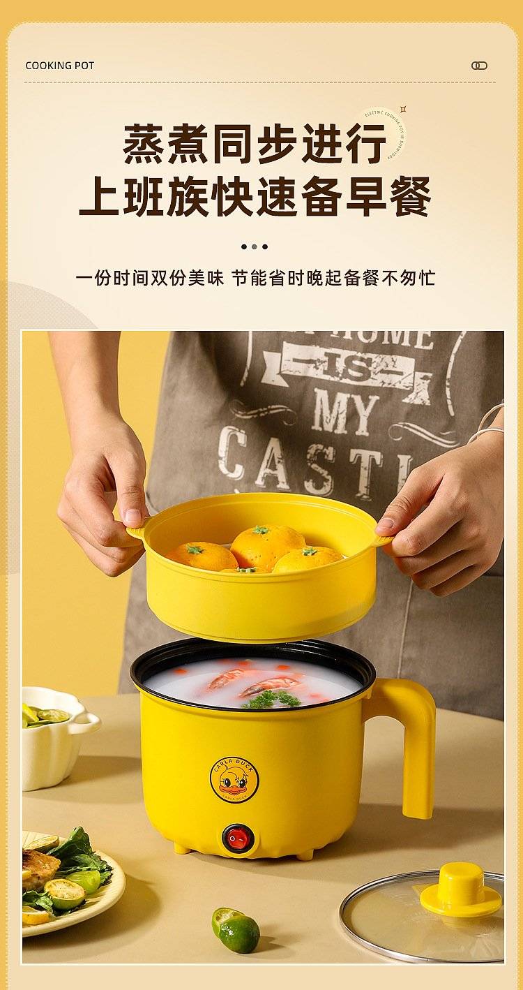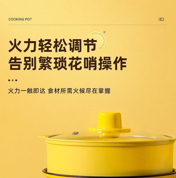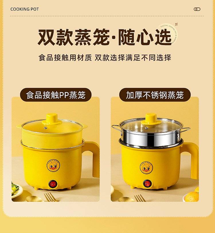 芙乐鑫迷你电煮锅2L家用多功能黄色小电火锅
