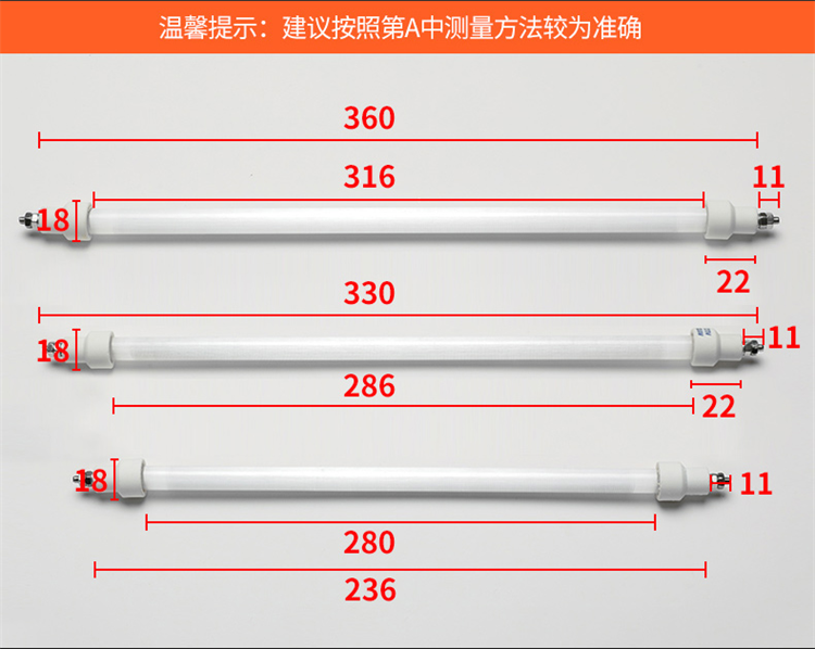 消毒柜加热管远红外线电热管石英灯管220v杀菌发热管通用100-400W