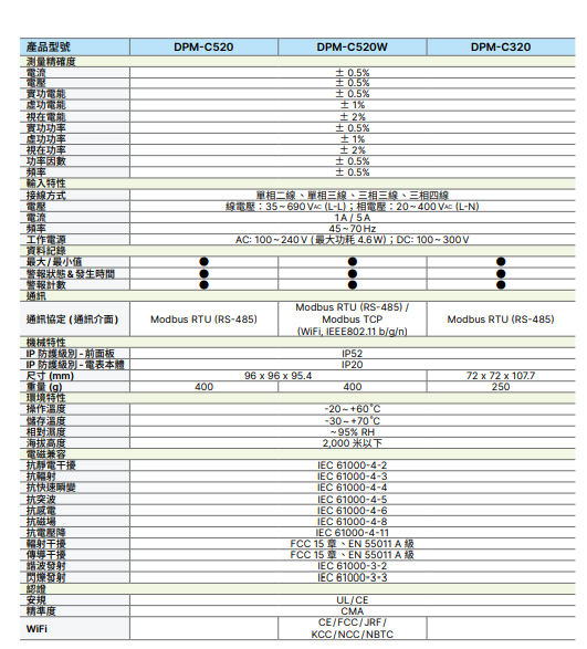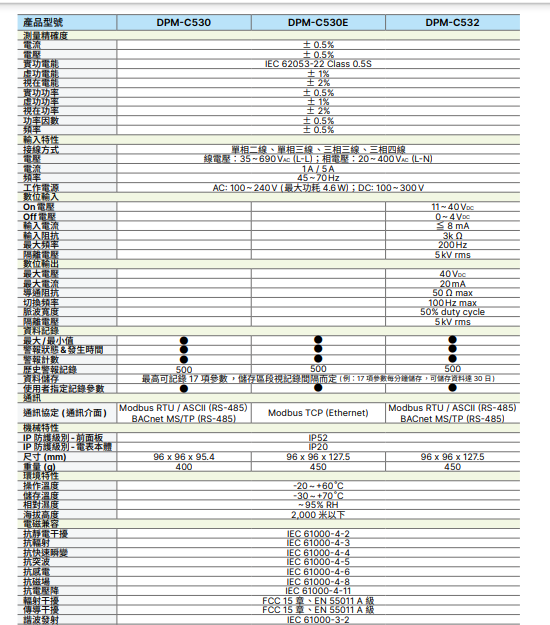 台达标准型多功能电表DPM-C520 智能DPM-C501L屏LCD显示