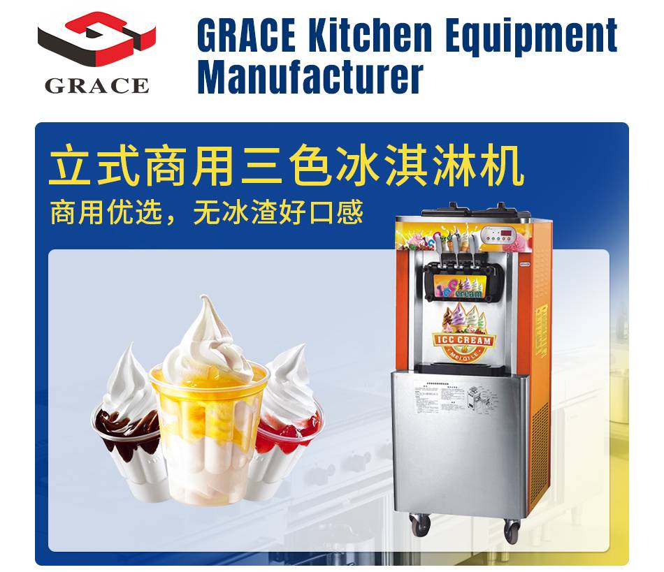 GRACE格瑞思冰淇淋机立式三色软冰激凌机商用小型雪糕机不锈钢