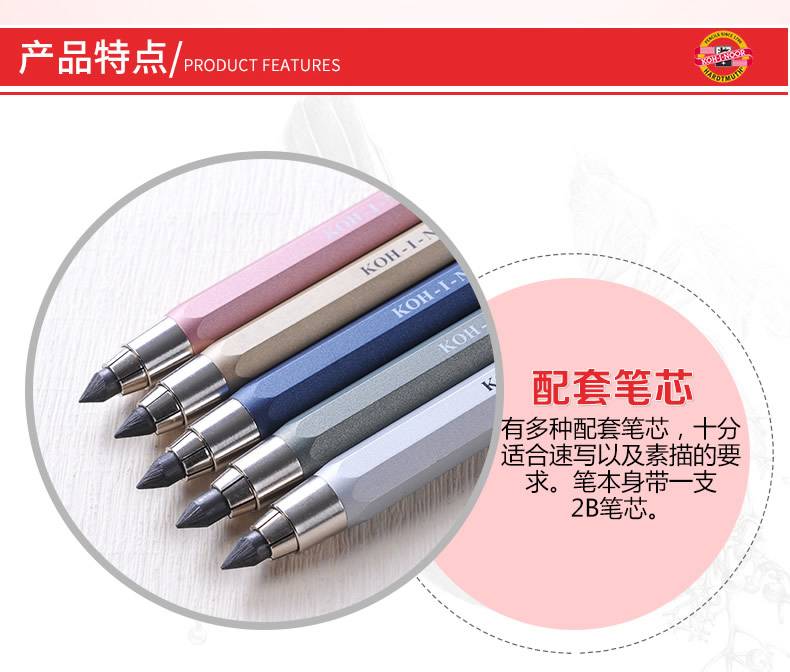 捷克进口KOH-I-NOOR酷喜乐全金属5.6mm粗杆活动铅笔5340 自动铅笔