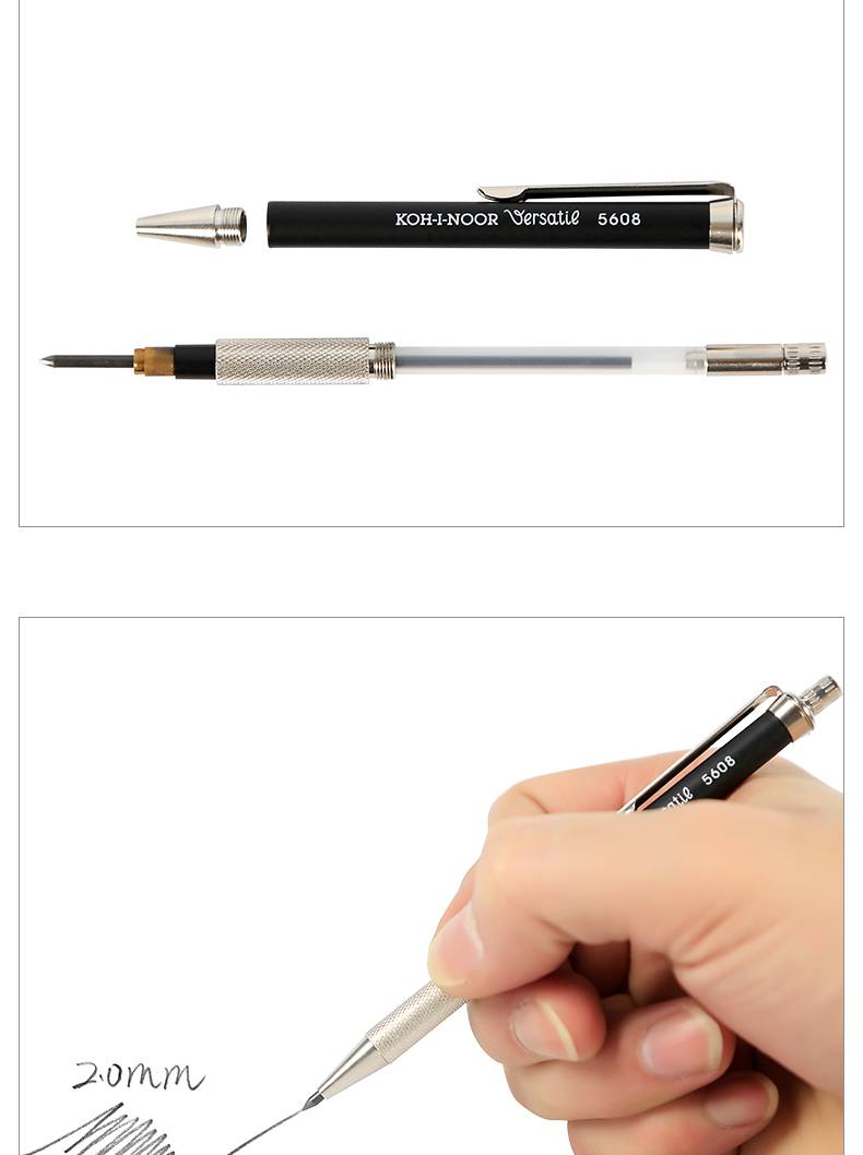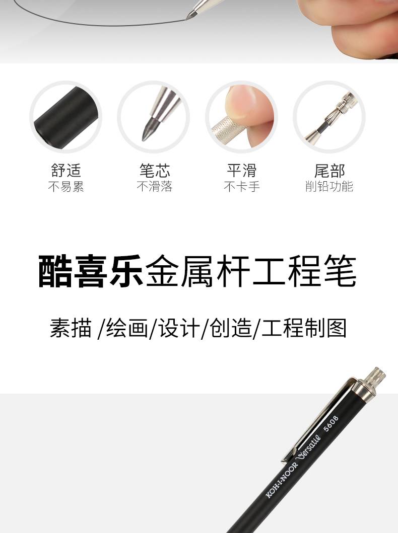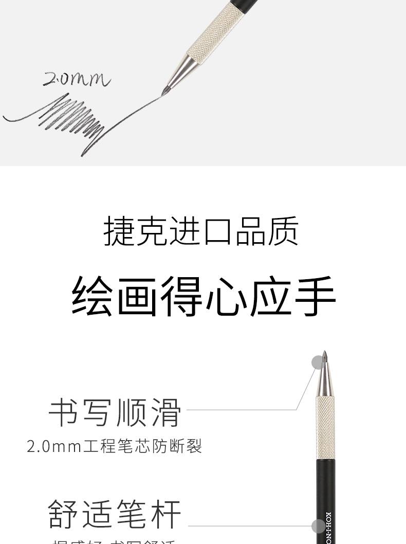 捷克酷喜乐2.0mm工程自动铅笔全金属杆5608活动铅笔自动笔工程设计绘图笔素描草图笔KOH-I-NOOR原装进口