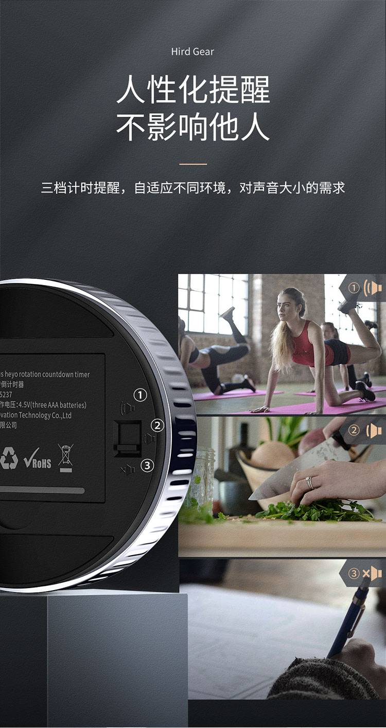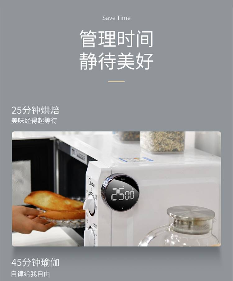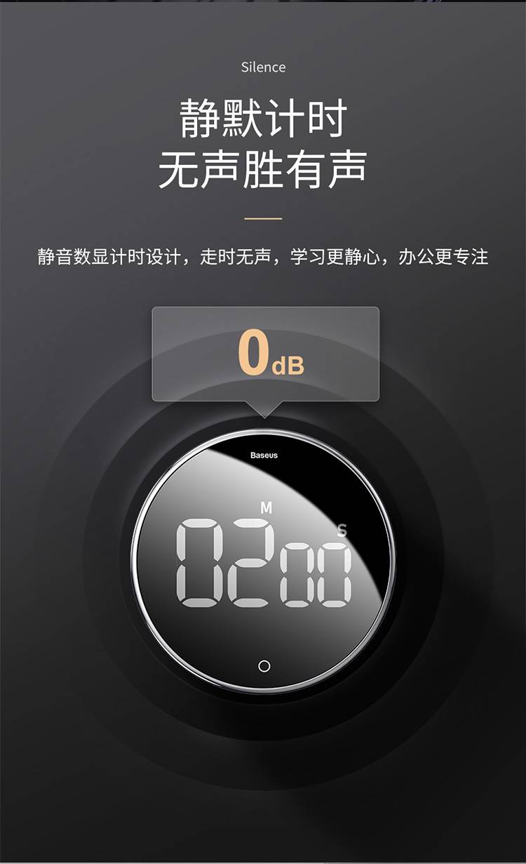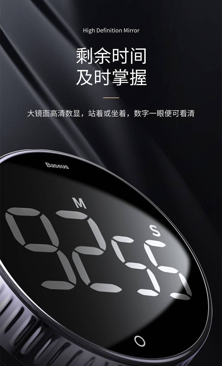 倍思倒计时器厨房旋转定时器静音磁吸秒表记时间闹钟学习提醒器