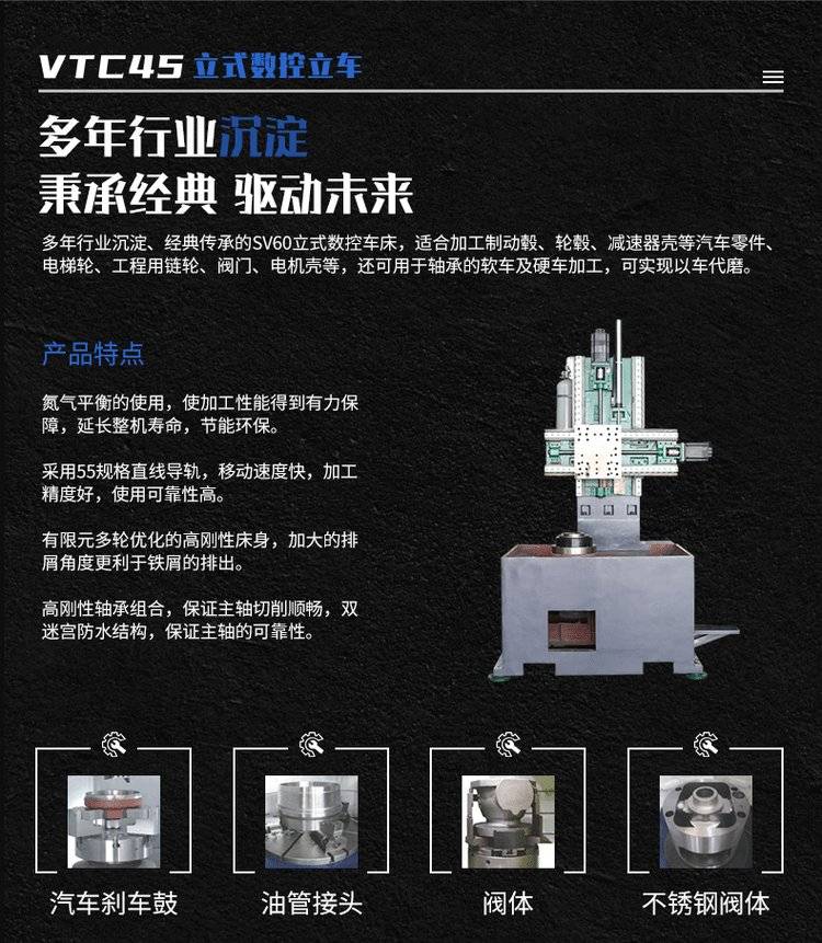 VTC45 轮毂制动鼓刹车盘数控立车 电机马达壳立式车床 离合器壳立车