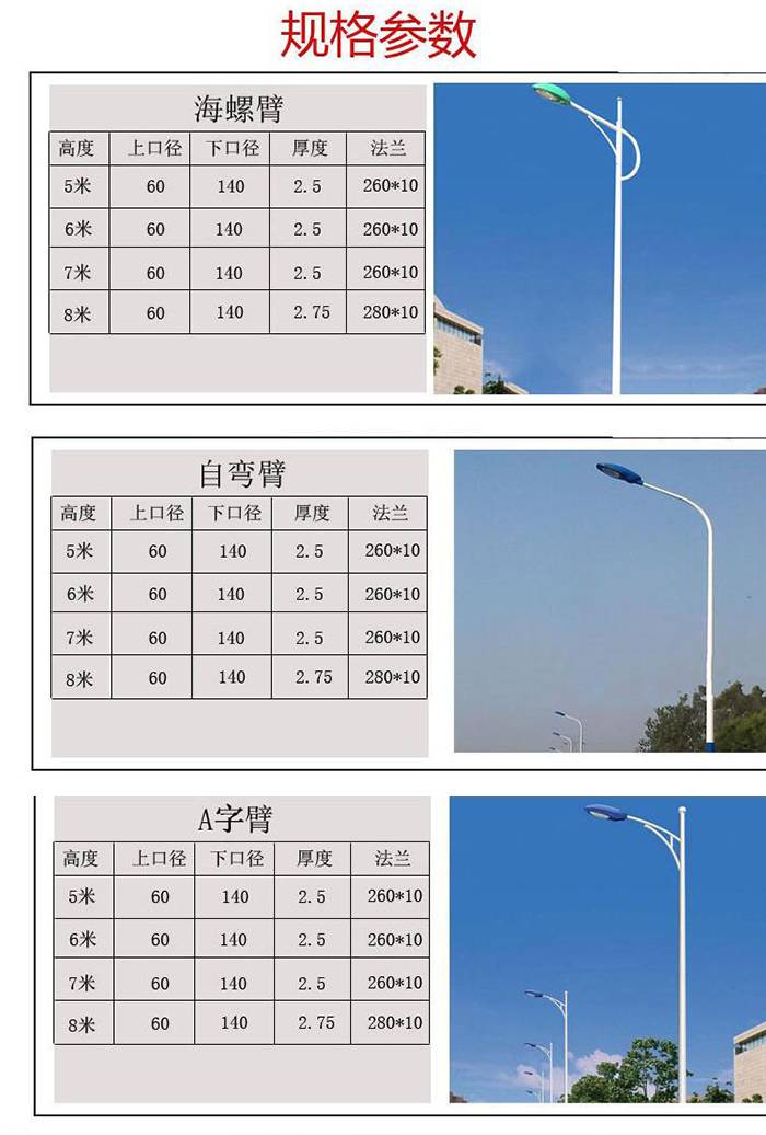 山 东厂家8米10米12米14米市电路灯 道路照明节能灯单臂双臂led灯