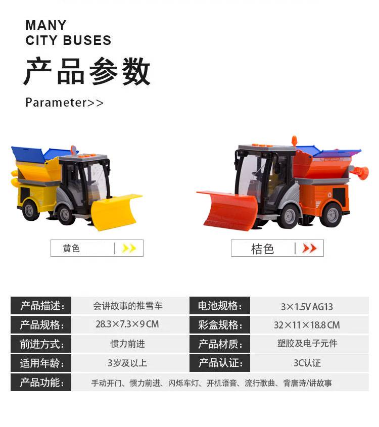 惯性工程车铲雪车儿童玩具车除雪推土勾机小孩挖掘机扫雪汽车推雪