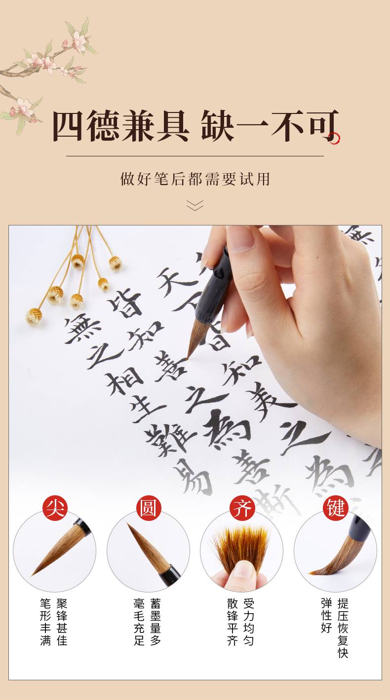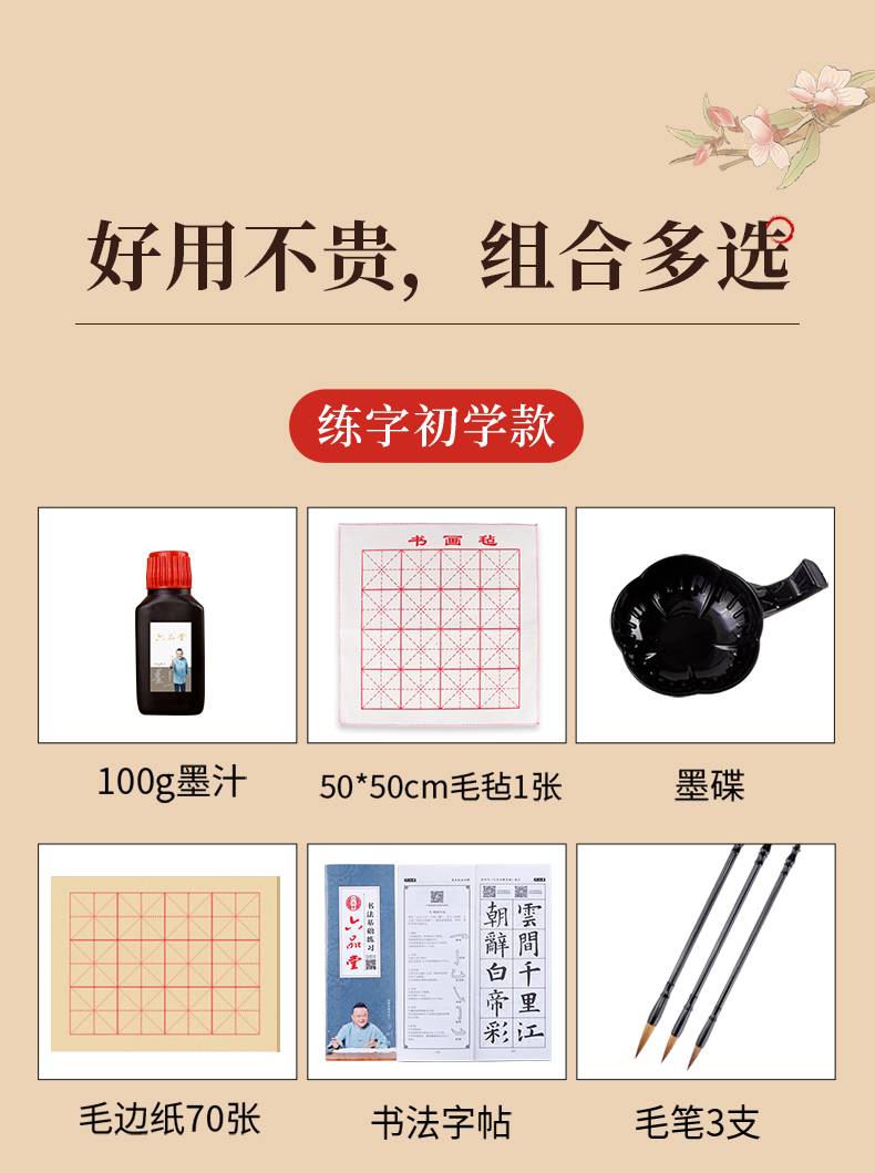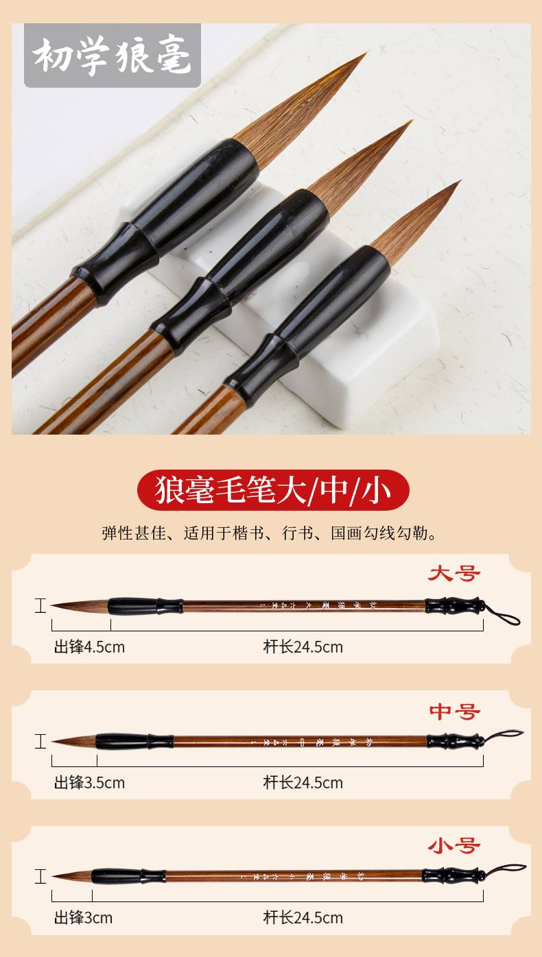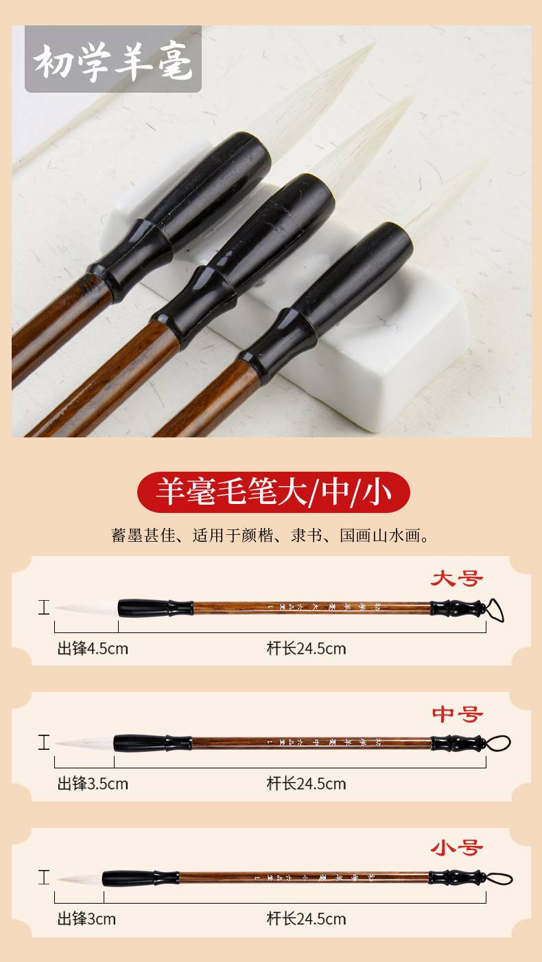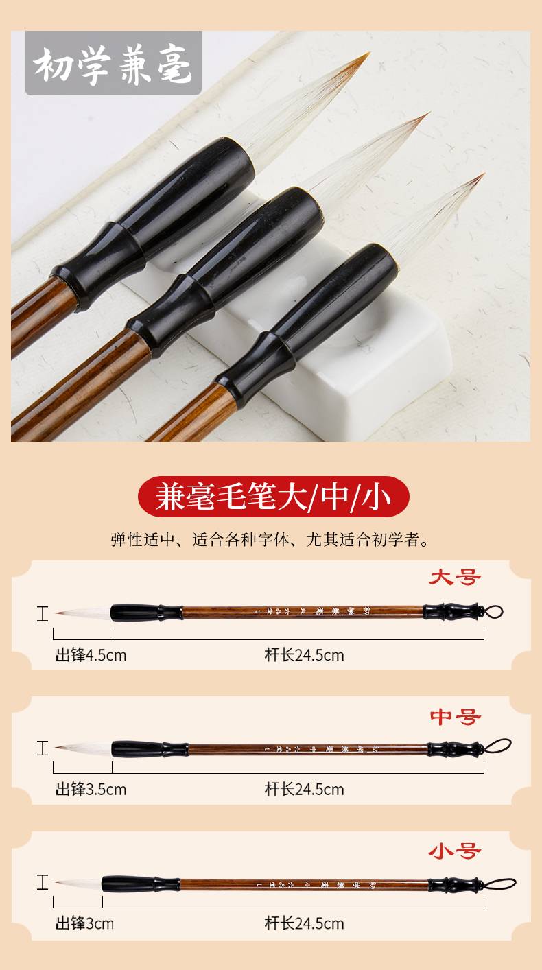 六品堂毛笔套装初学狼毫兼毫羊毫成人入门大中小楷书法用笔初学者专用练字小学生儿童白云毛笔国画软笔书法笔