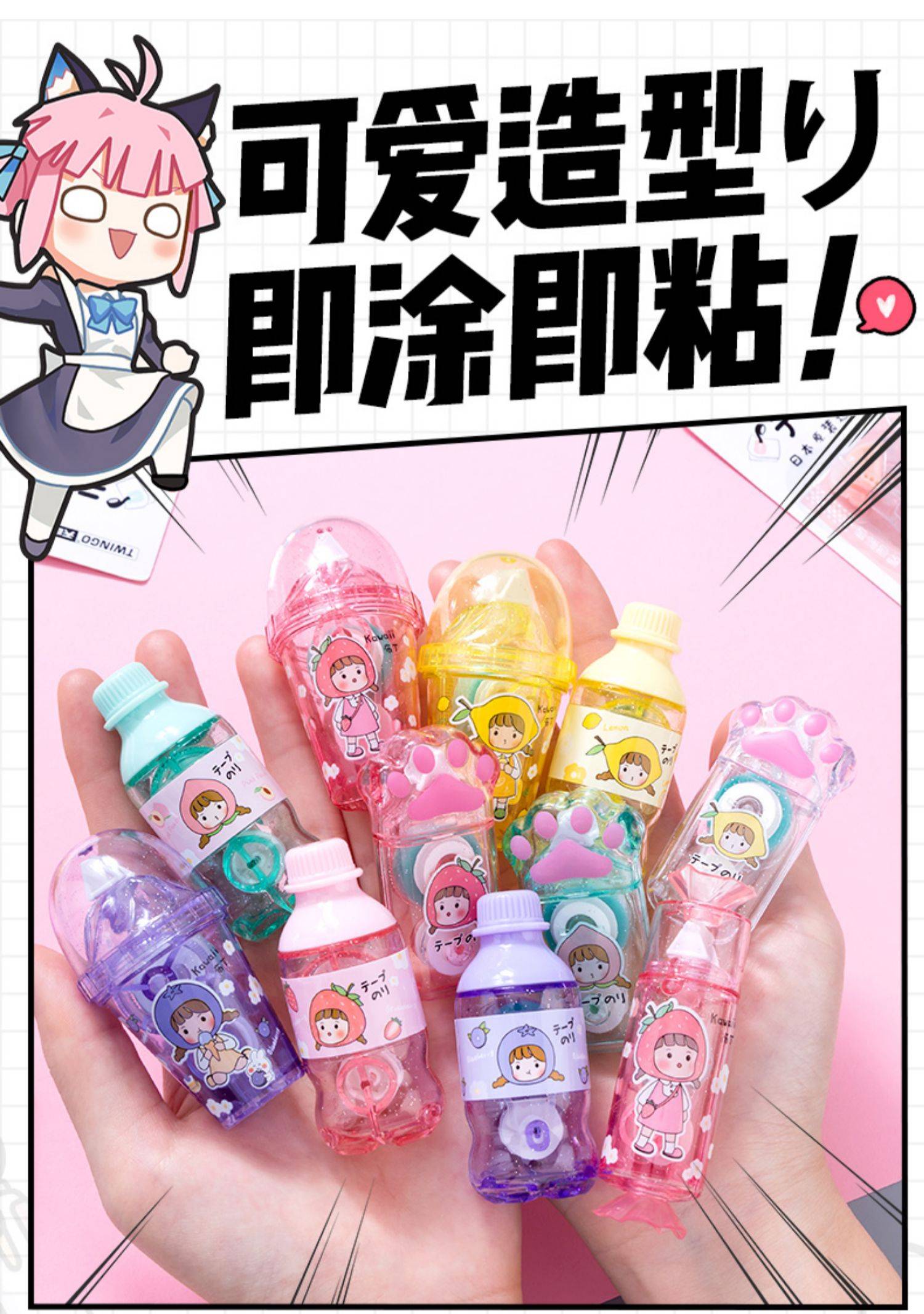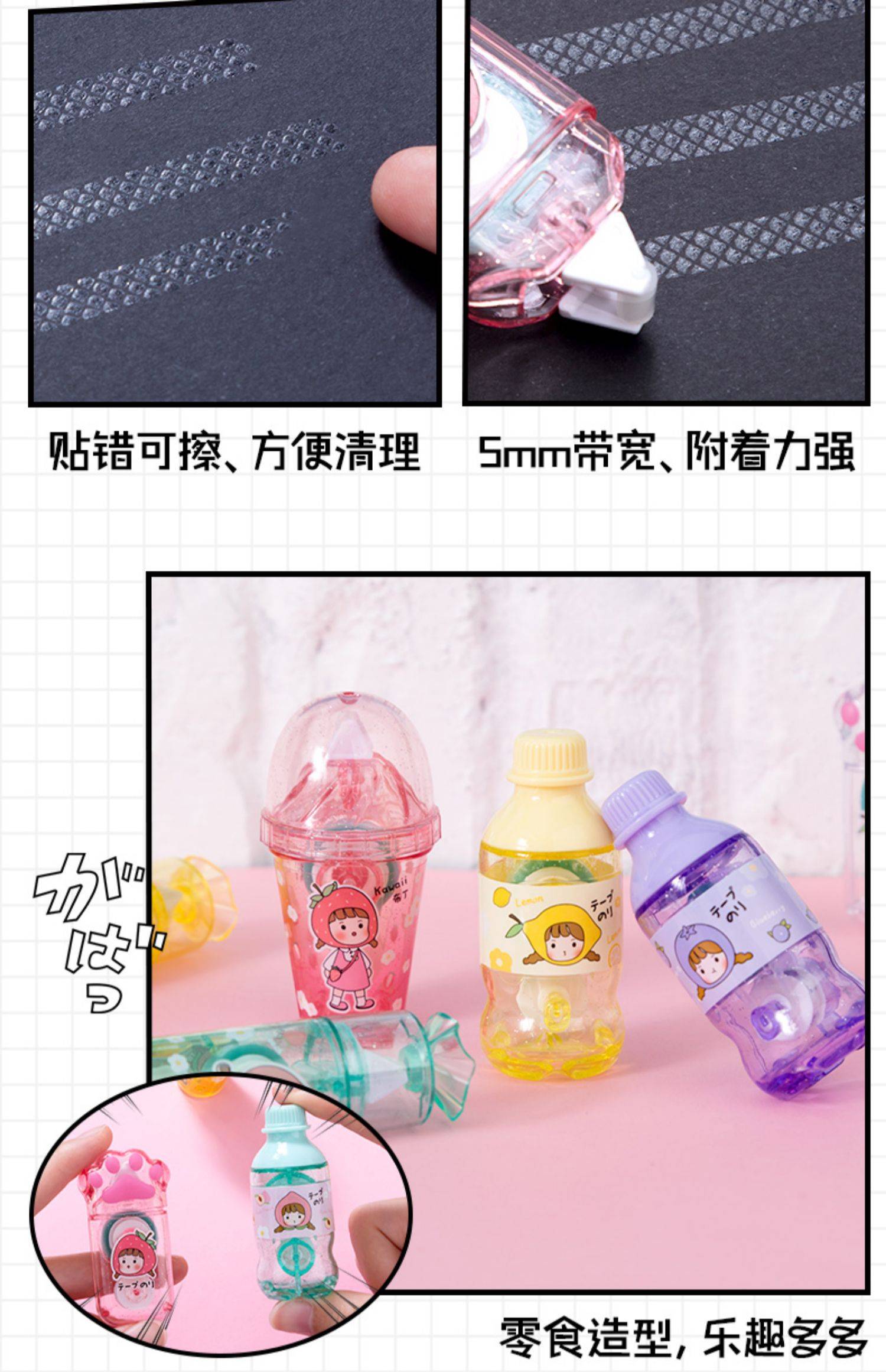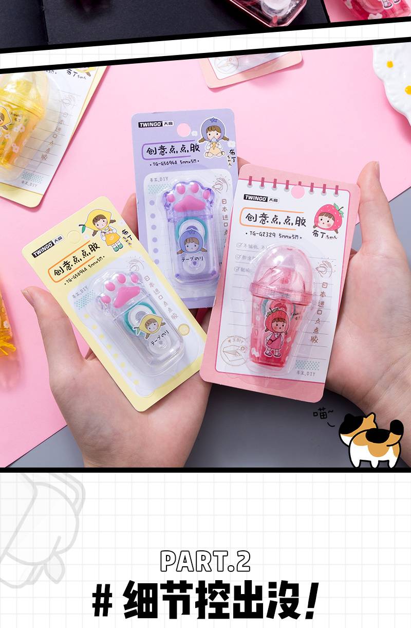 可爱猫爪点点胶少女心修正带式双面胶学生女孩手帐专用手账贴纸透