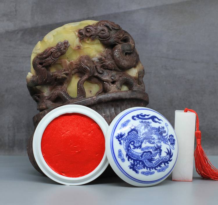 荣宝斋书画篆刻印泥朱砂贡砂红色印泥文房四宝黄磦朱磦专用红篆刻