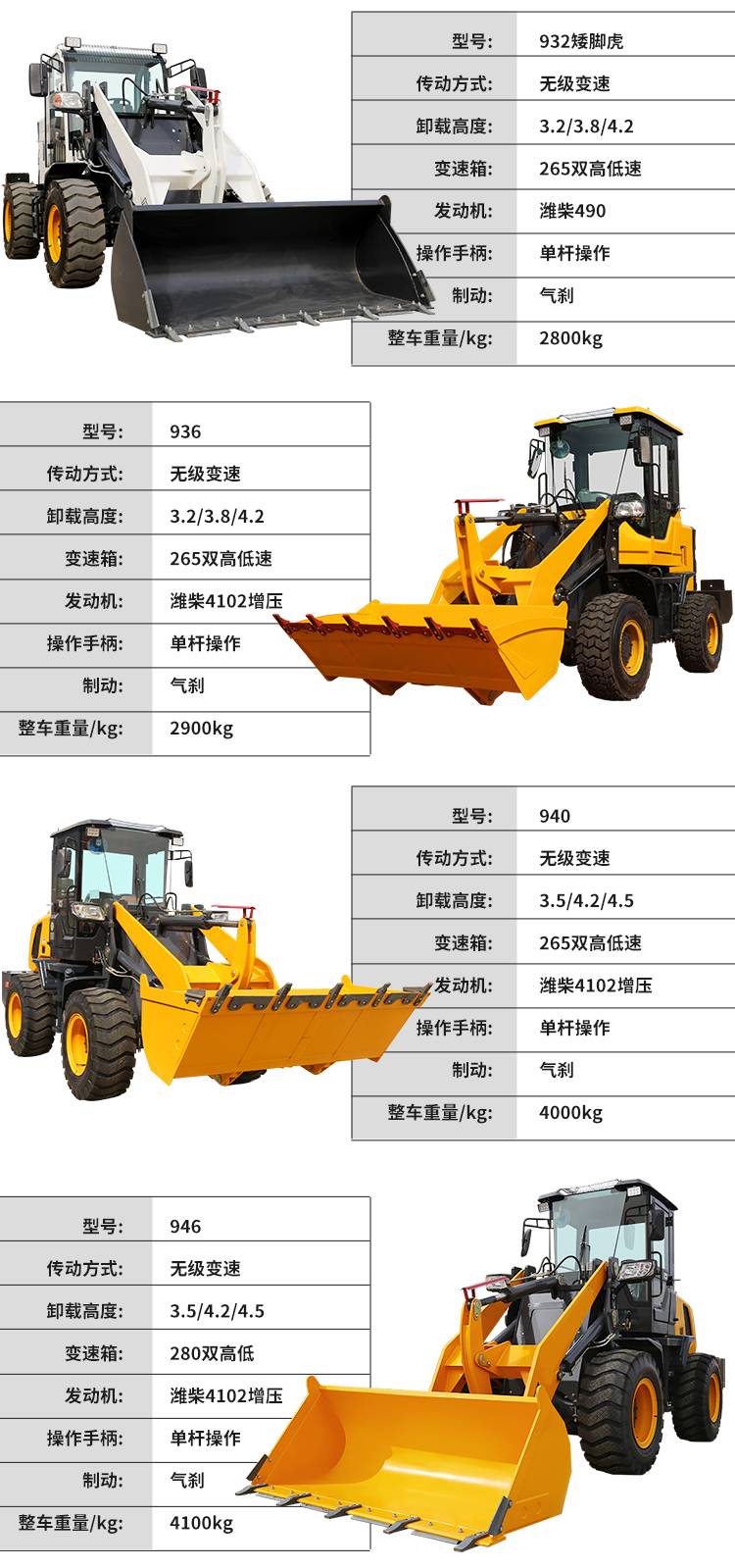 936中型轮式装载机 四驱铲车四缸柴油推土机 加宽铲斗加厚大臂