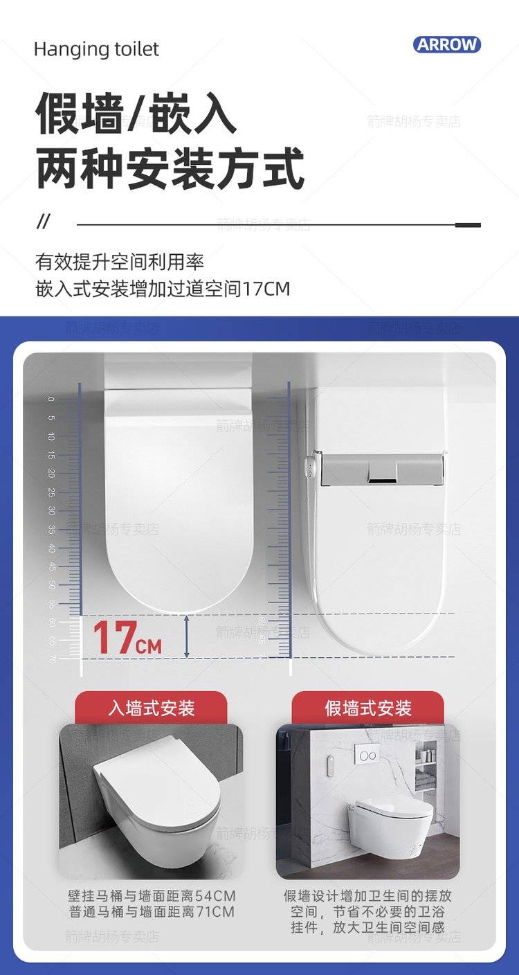 箭牌壁挂式马桶智能入墙式隐藏水箱墙排嵌入式挂墙悬空悬挂坐便器