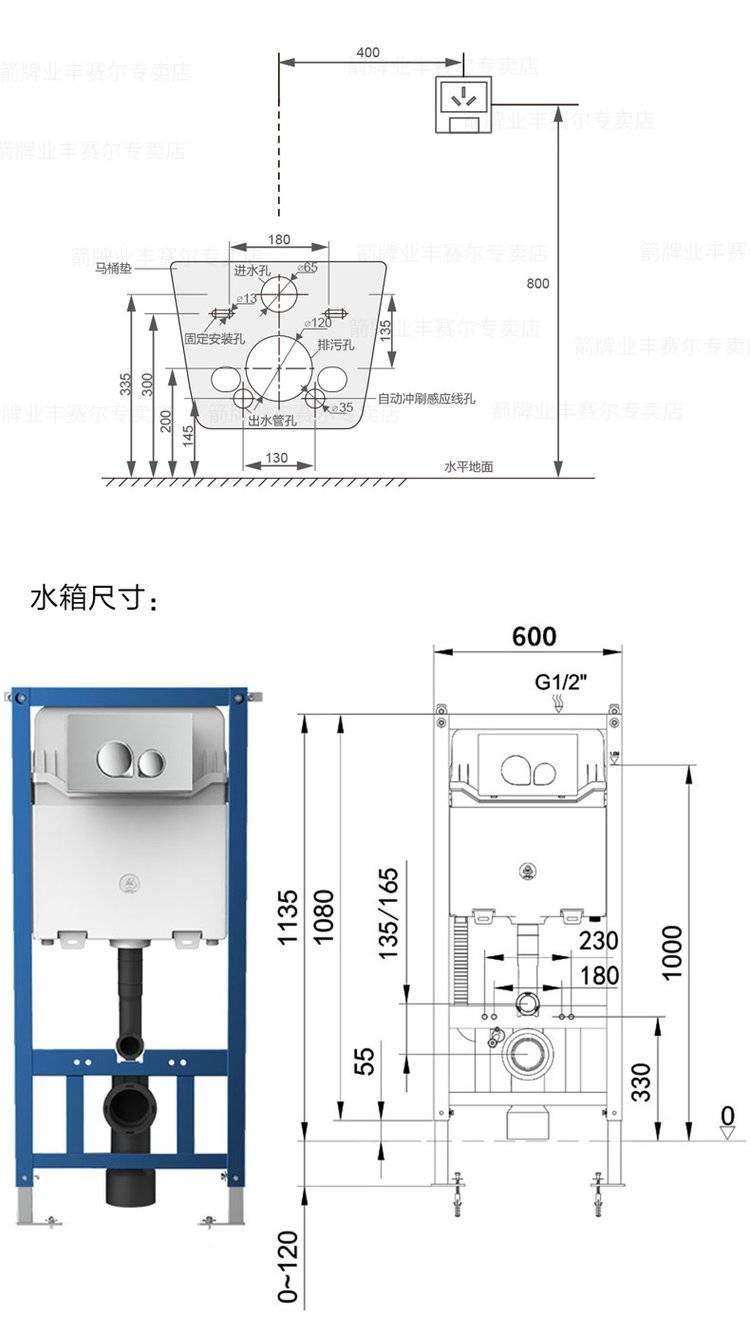 箭牌一体智能壁挂式马桶入墙式隐藏水箱墙排嵌入式挂墙悬空坐便器