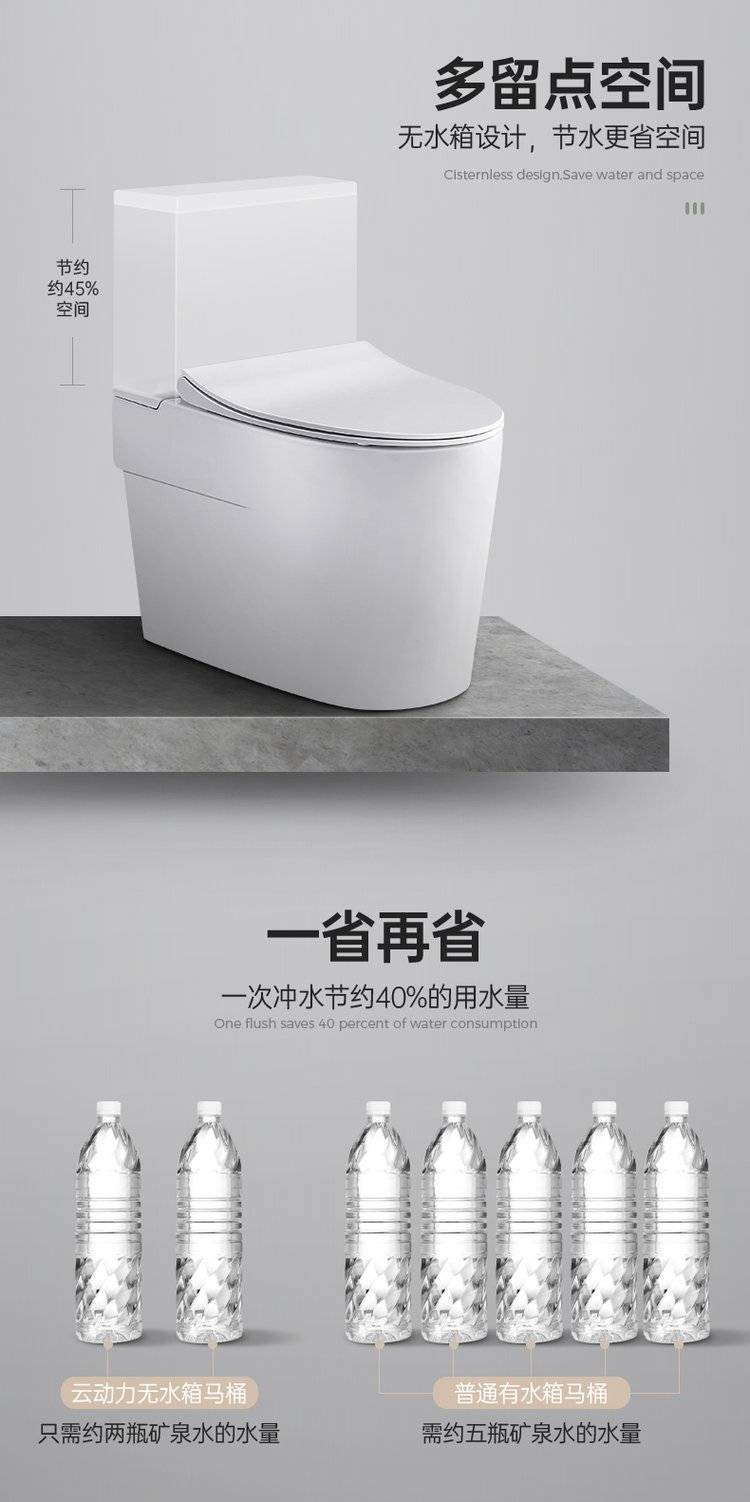 佑恩卫浴无水箱马桶 小户型普通非智能家用抽水静音虹吸式坐便器
