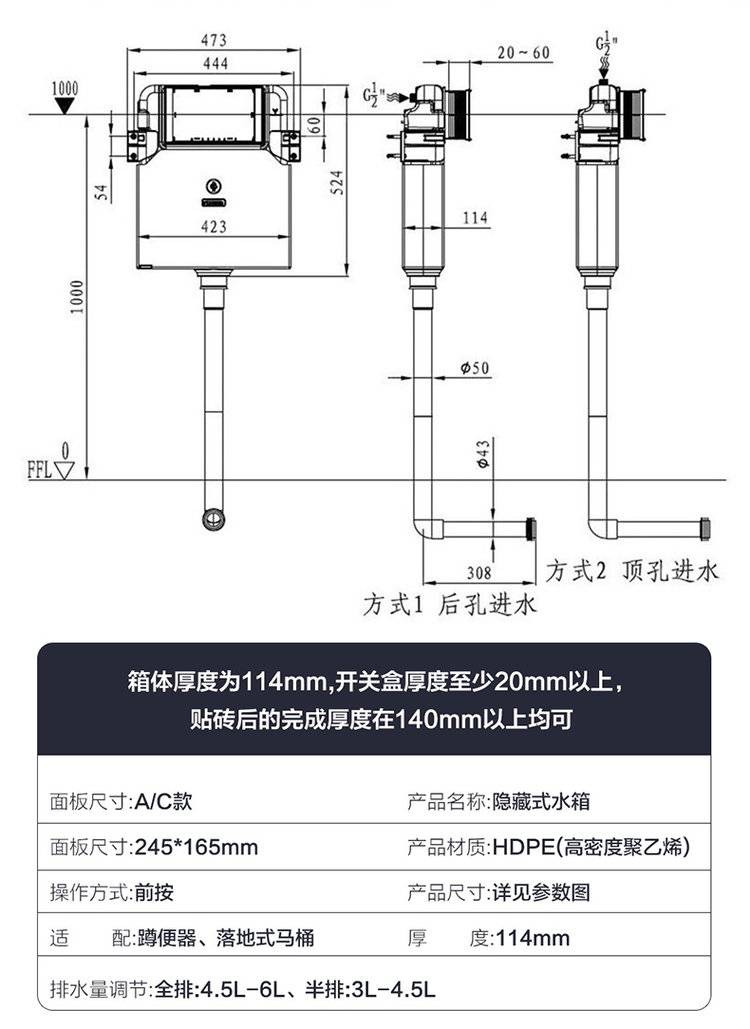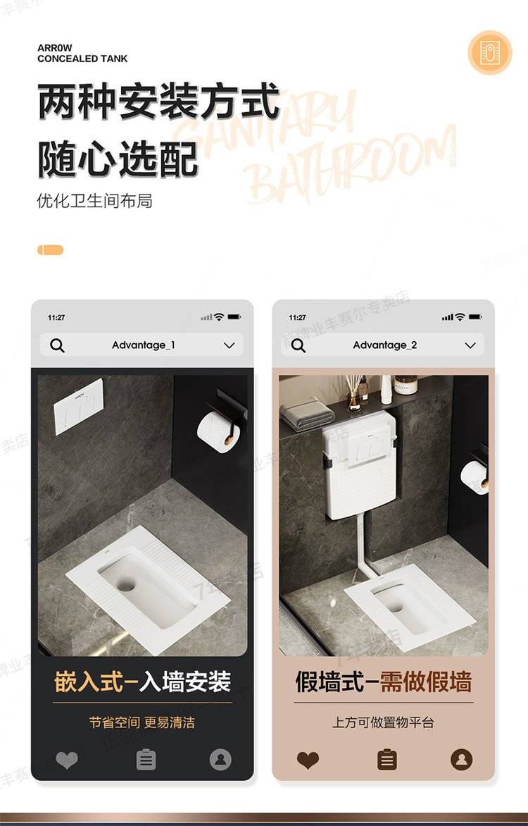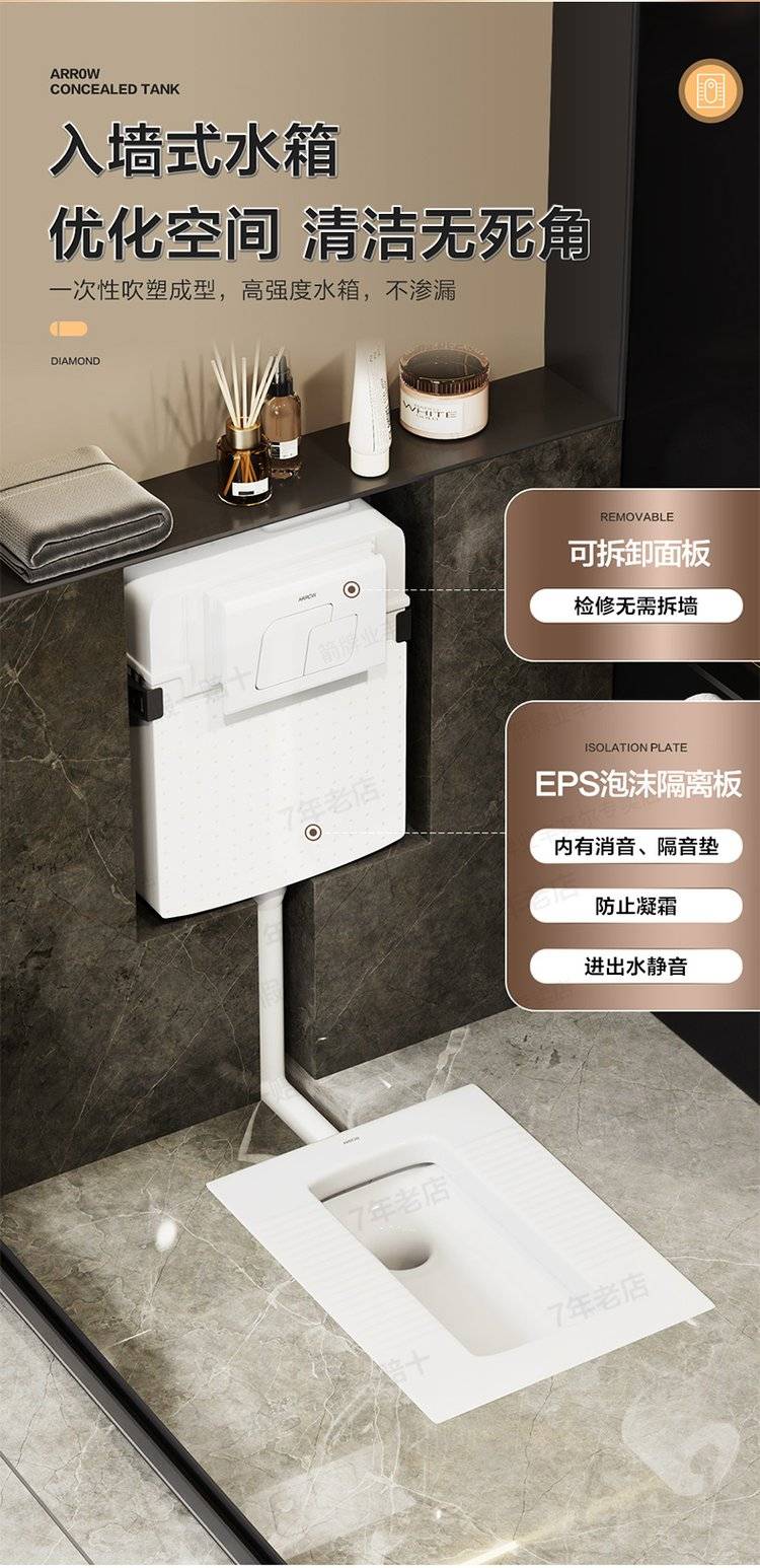 箭牌隐藏式水箱嵌入式蹲坑便池暗藏暗装蹲便器大便器卫生间冲水箱