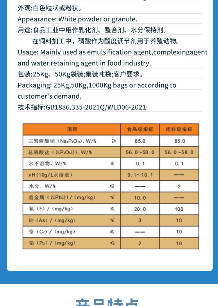 三聚磷酸钠 海产品肉制品 水分保持剂 品质改良剂联德无机盐
