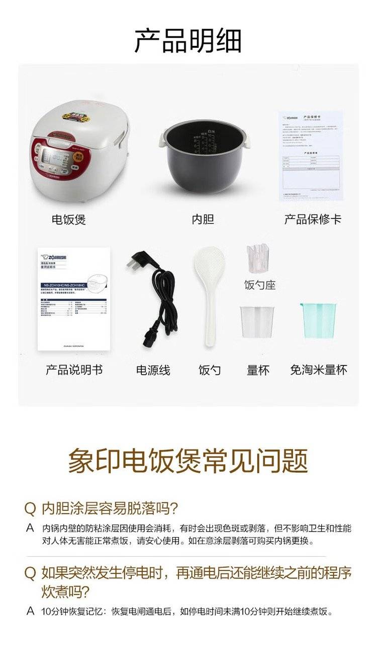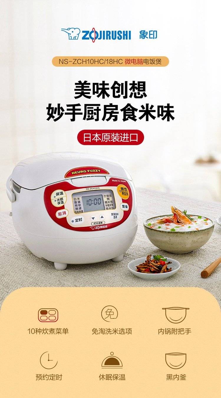 象印电饭煲NS-ZCH10HC 微电脑多功能电饭锅3L 日本原装进口