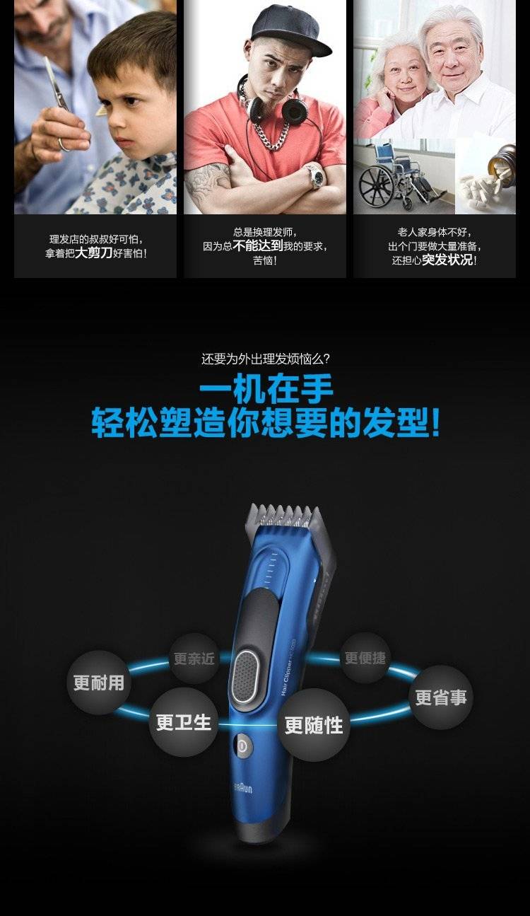 博朗BRAUN电动理发器 电推剪剃头电推子 家用理发工具