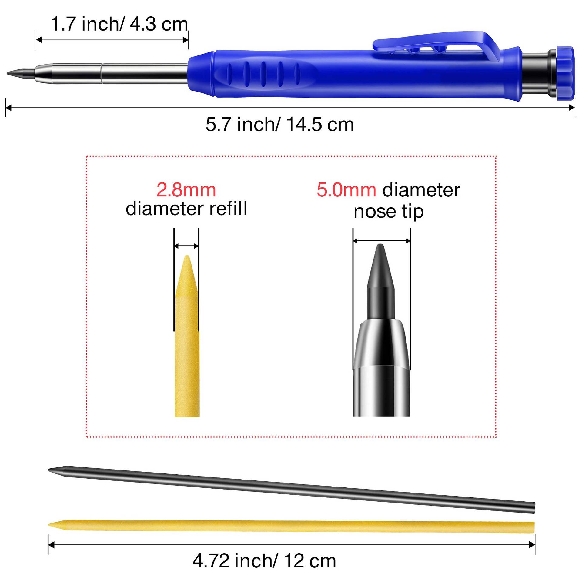 深孔笔木工笔活动铅笔记号划线笔工程铅笔可调节金属石墨笔芯套装