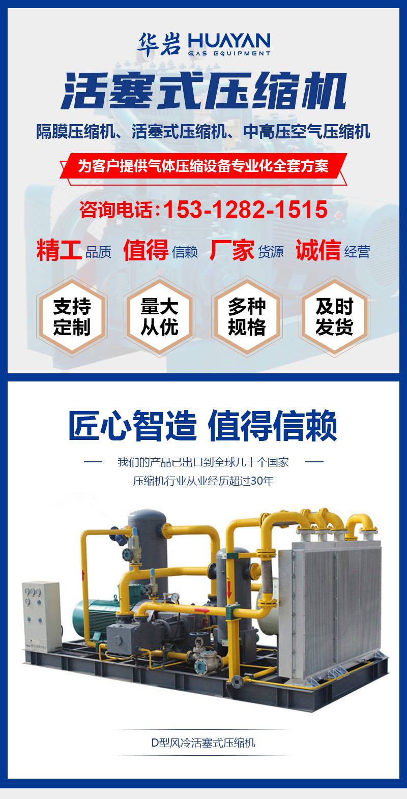 华岩 活塞式压缩机 可压缩氢气/硫化氢 低噪音震动小 安全可靠