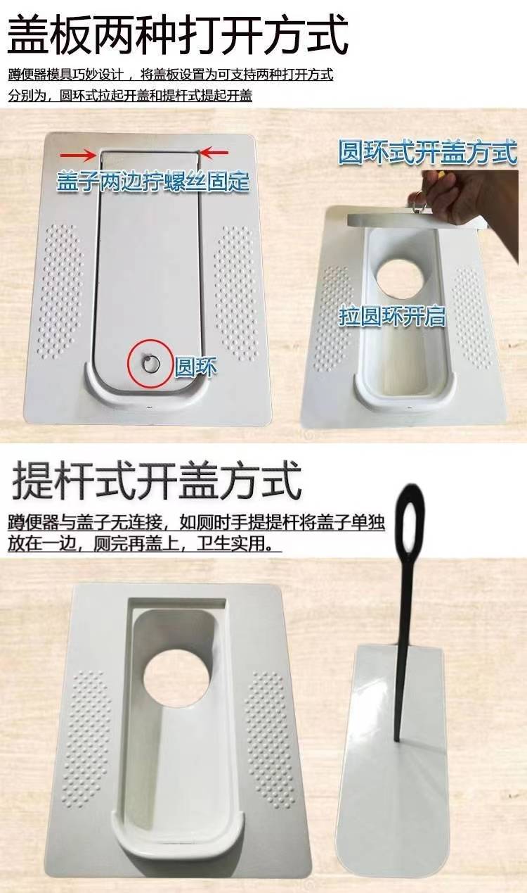 旱厕改造模压蹲坑 玻璃钢大口160直通带盖防臭蹲便器 耐温耐寒耐摔