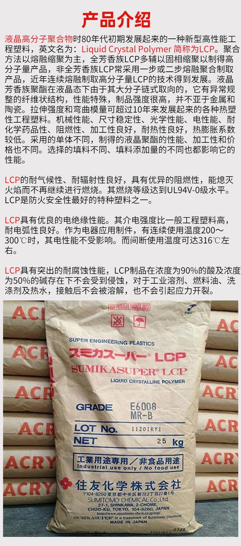 日本住友化学LCP E6810LHF-BZ 高刚性 50%玻纤+无机物 微波炉容器应用