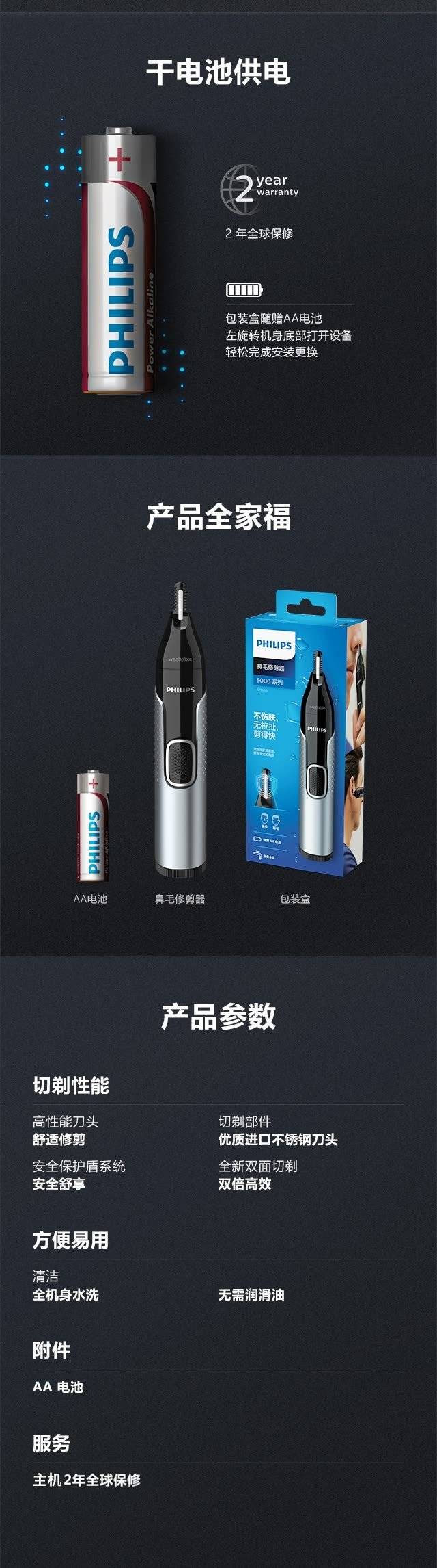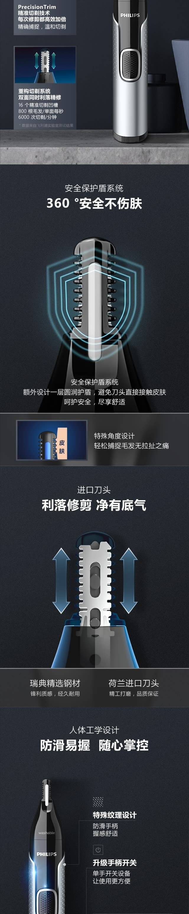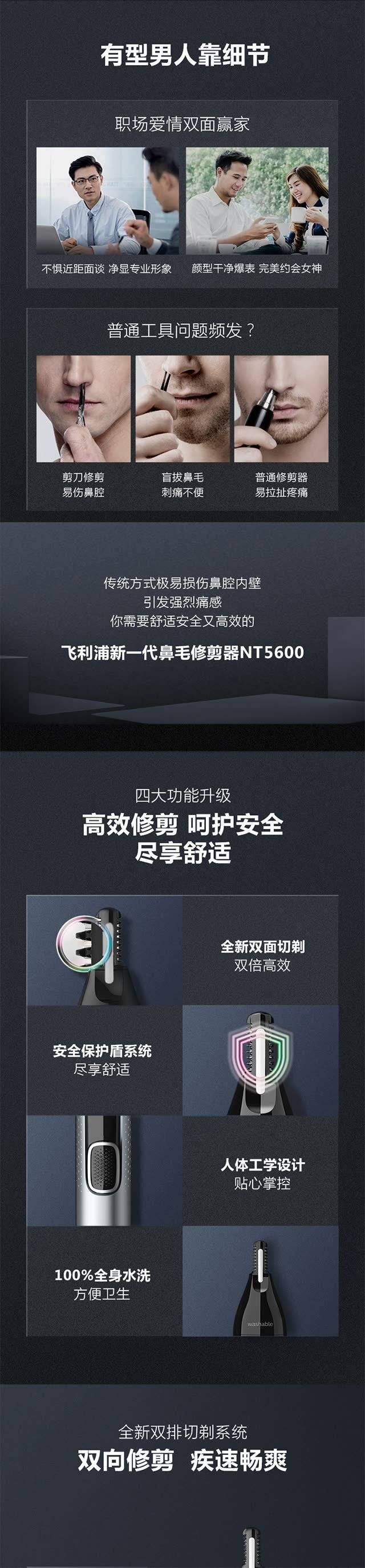 飞利浦(PHILIPS)鼻毛修剪器双面切剃全身水洗剃毛器NT5600挺值