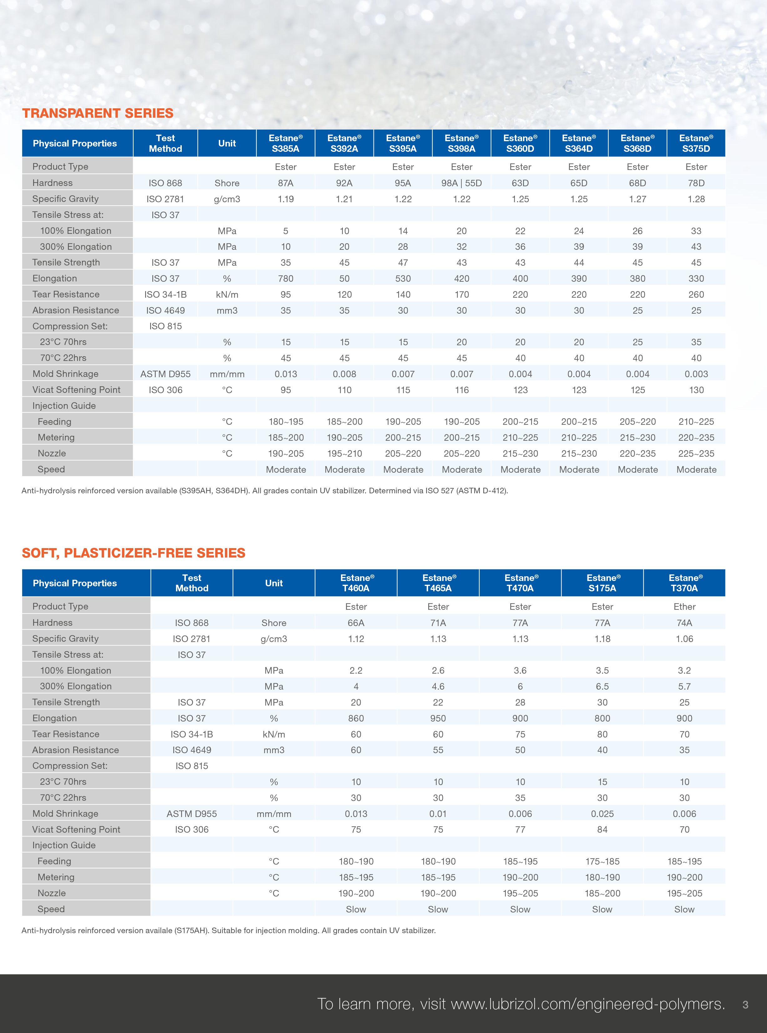 热塑性聚氨酯TPU 美国Lubrizol 58252 适用于流延膜和溶液涂布应用