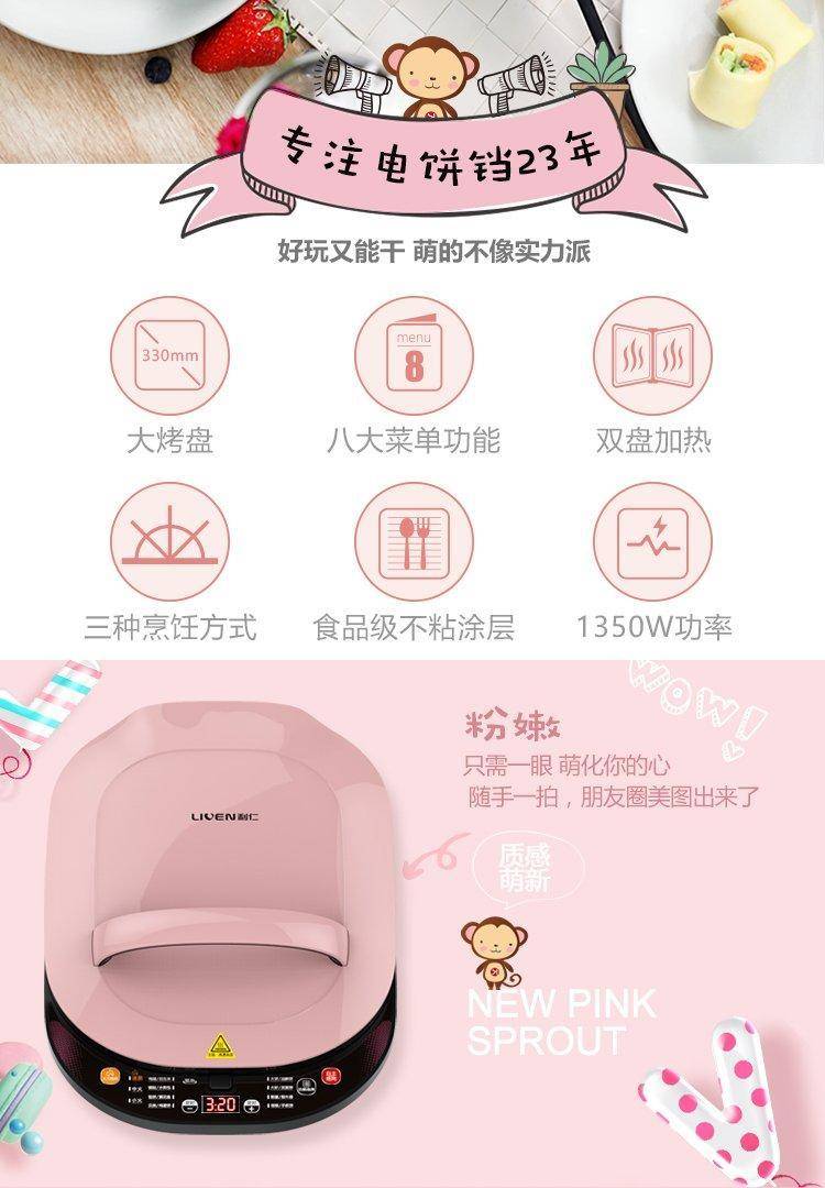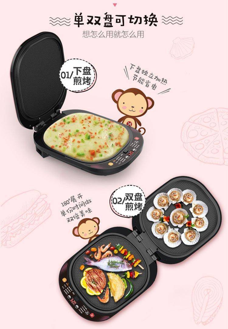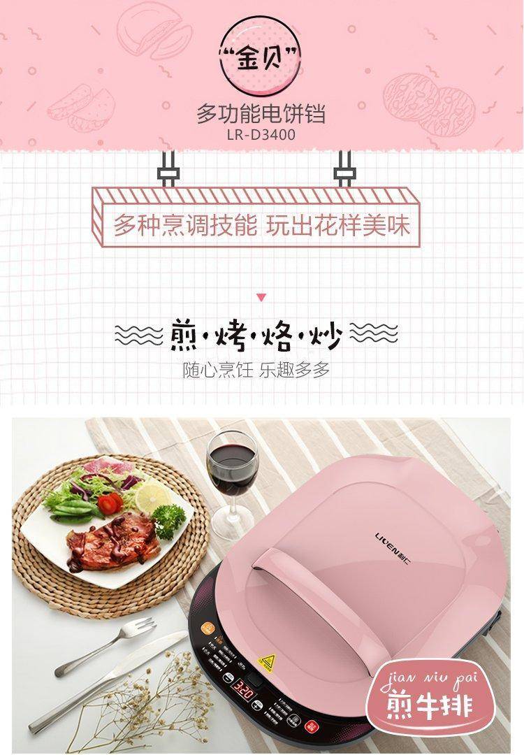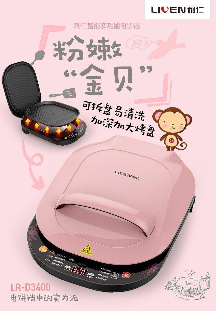 利仁多功能电饼铛LR-D3400 双面加热智能煎烤机 可拆洗煎饼铛