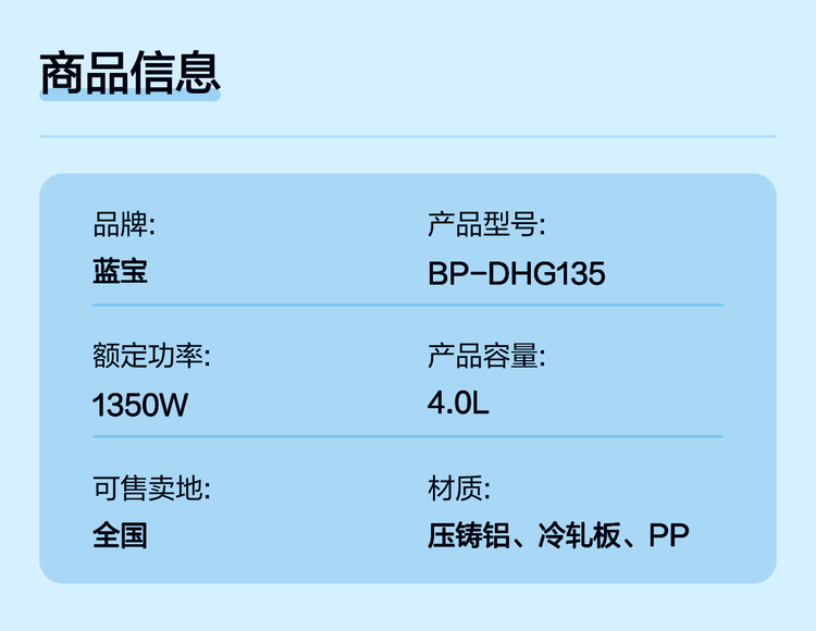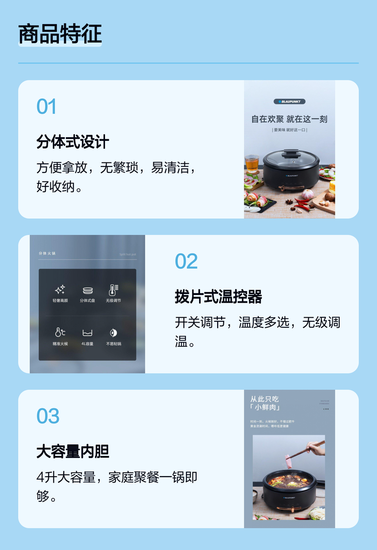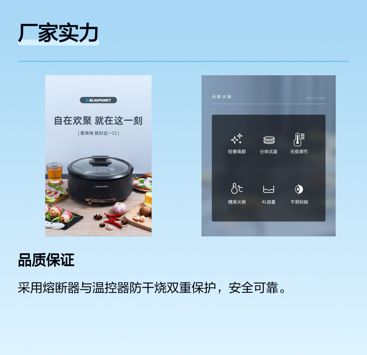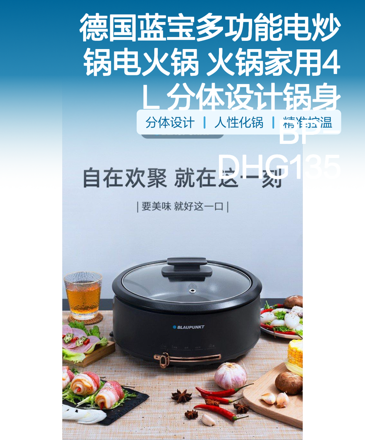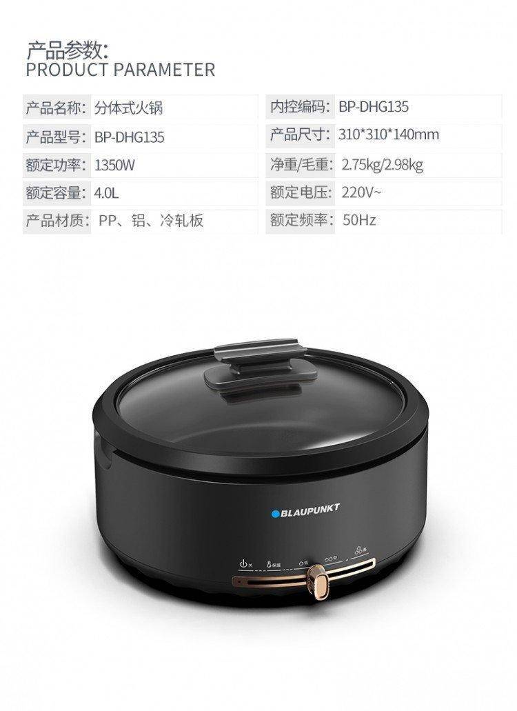 德国蓝宝多功能电炒锅电火锅 火锅家用4L 分体设计锅身 BP-DHG135