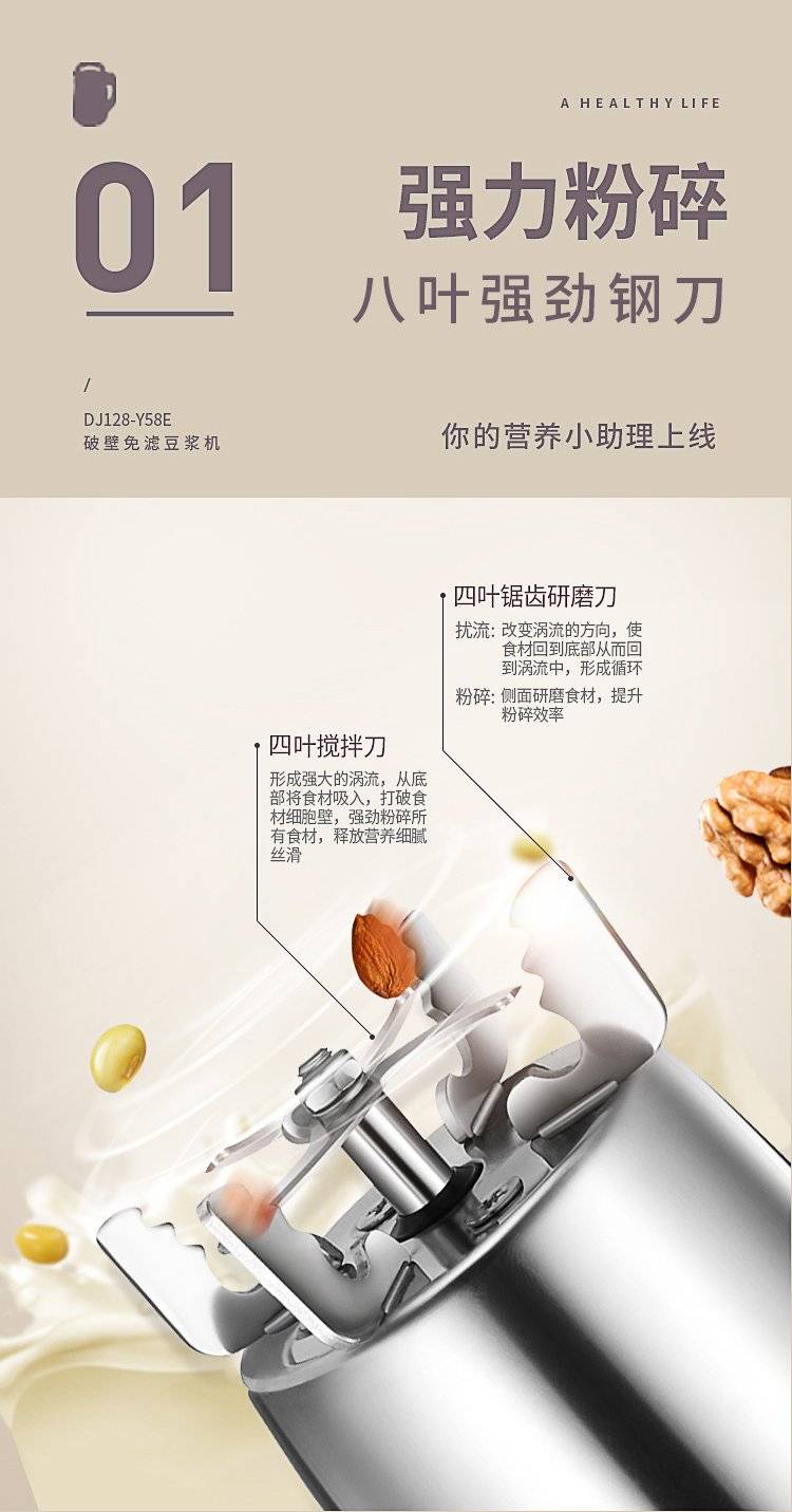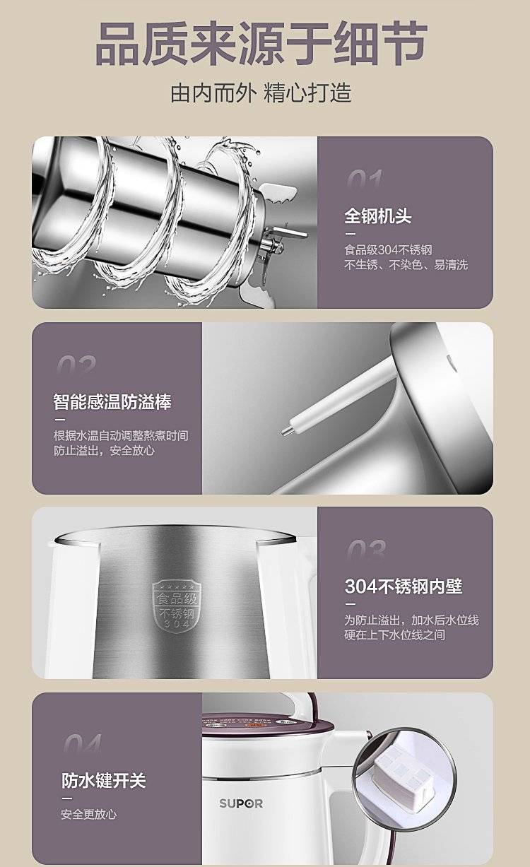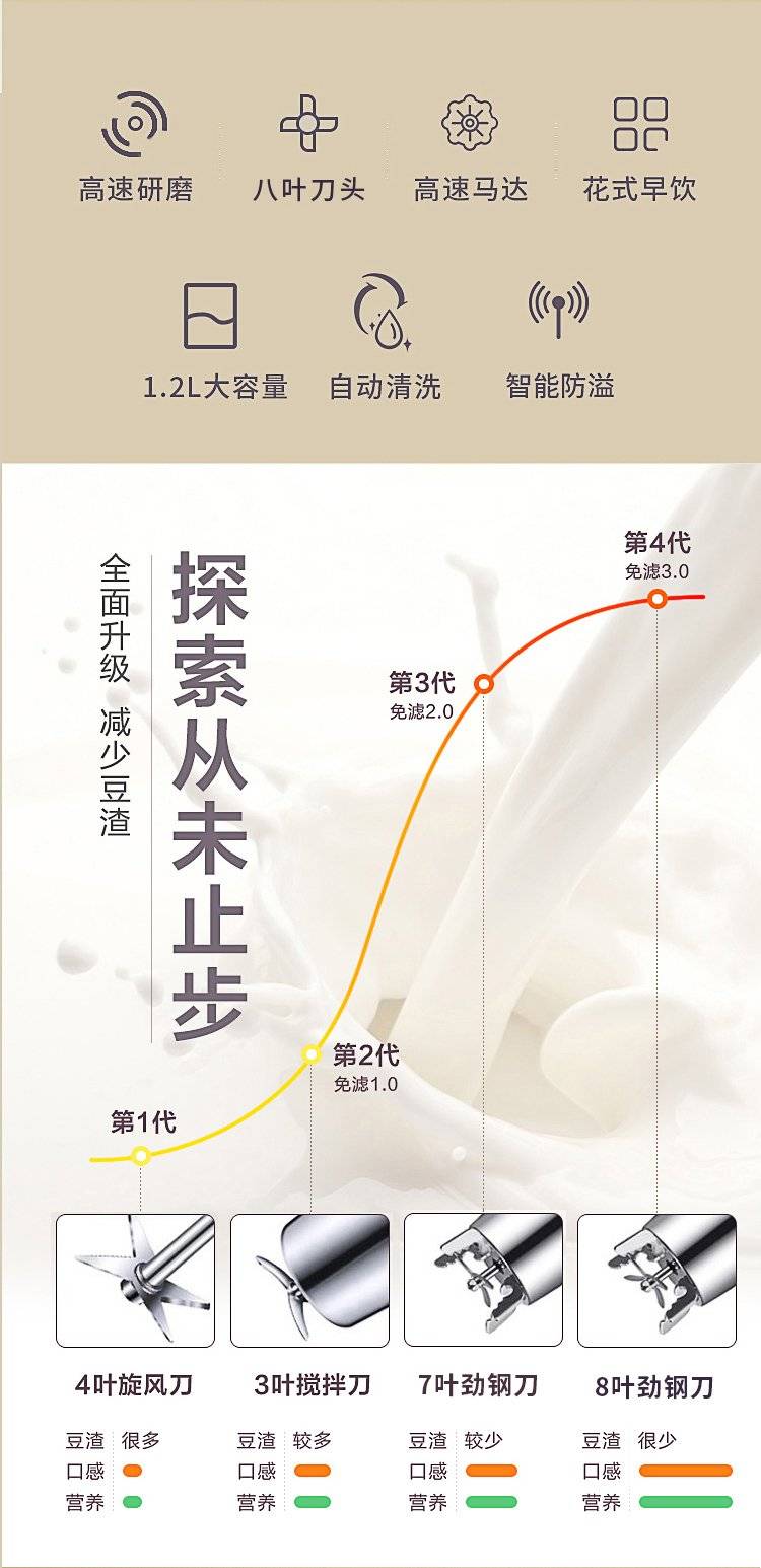豆浆机家用全自动免煮小型破壁免过滤多功能旗舰店