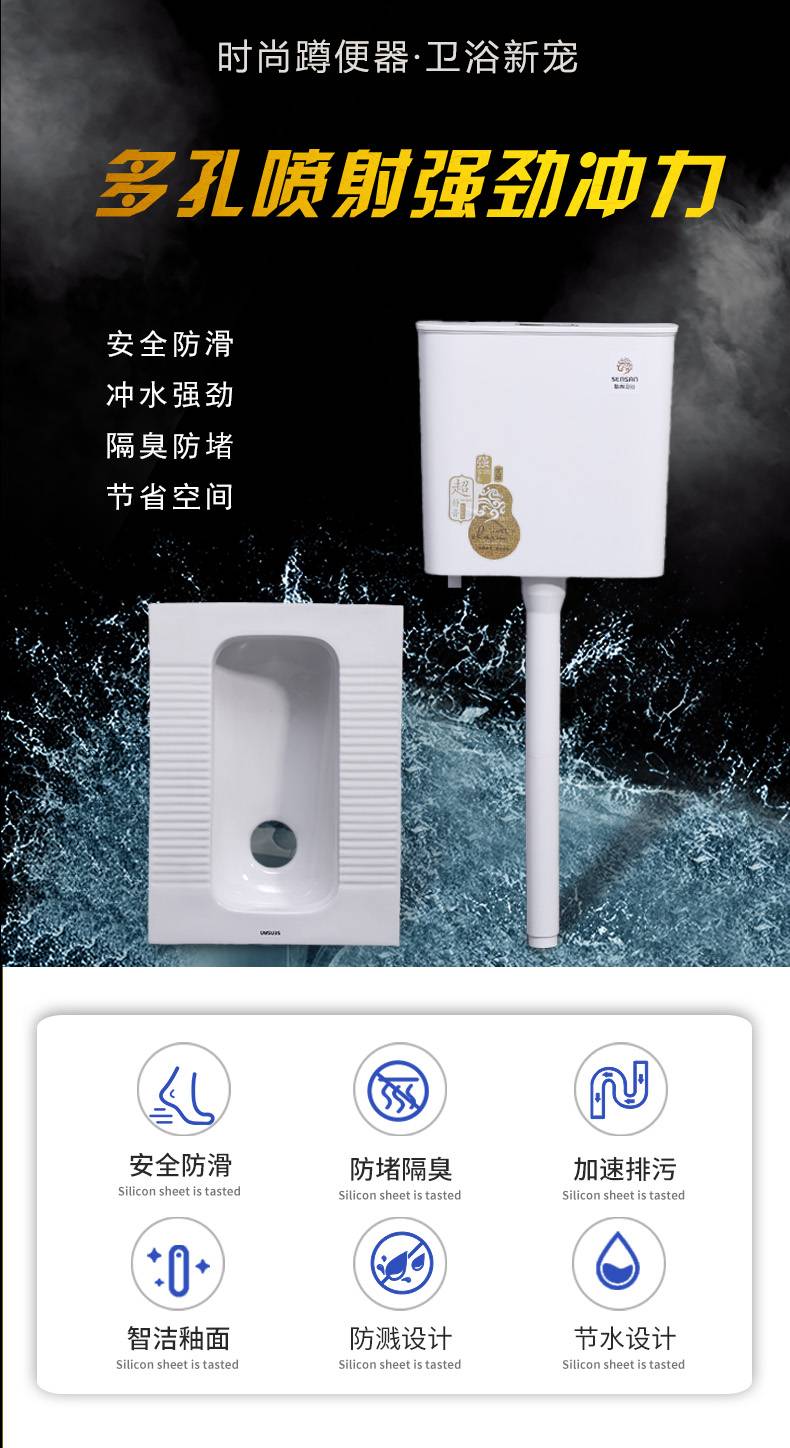 家用卫生间卫浴水箱蹲便器 防臭陶瓷蹲坑厂家 承接工程 支持验厂 聖尚