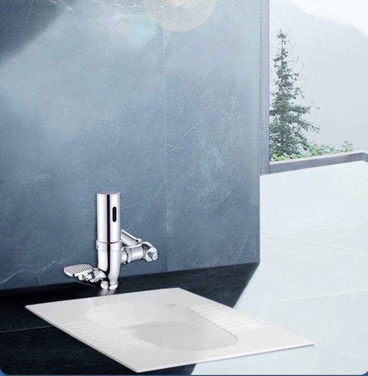 厕所蹲便器 家用蹲坑 脚踩感应 蹲厕防臭工程 明装脚踏大便器冲水阀
