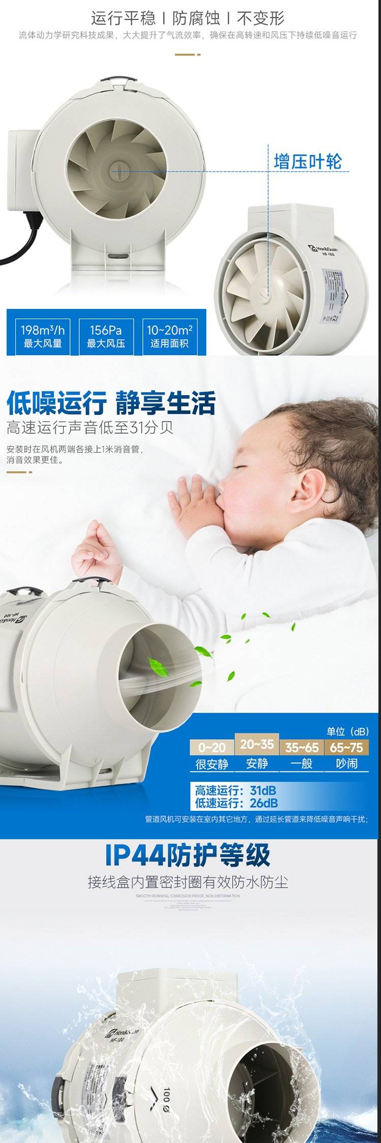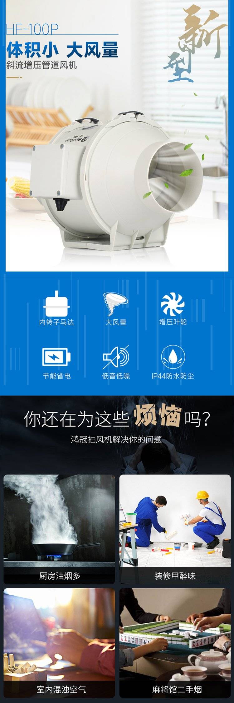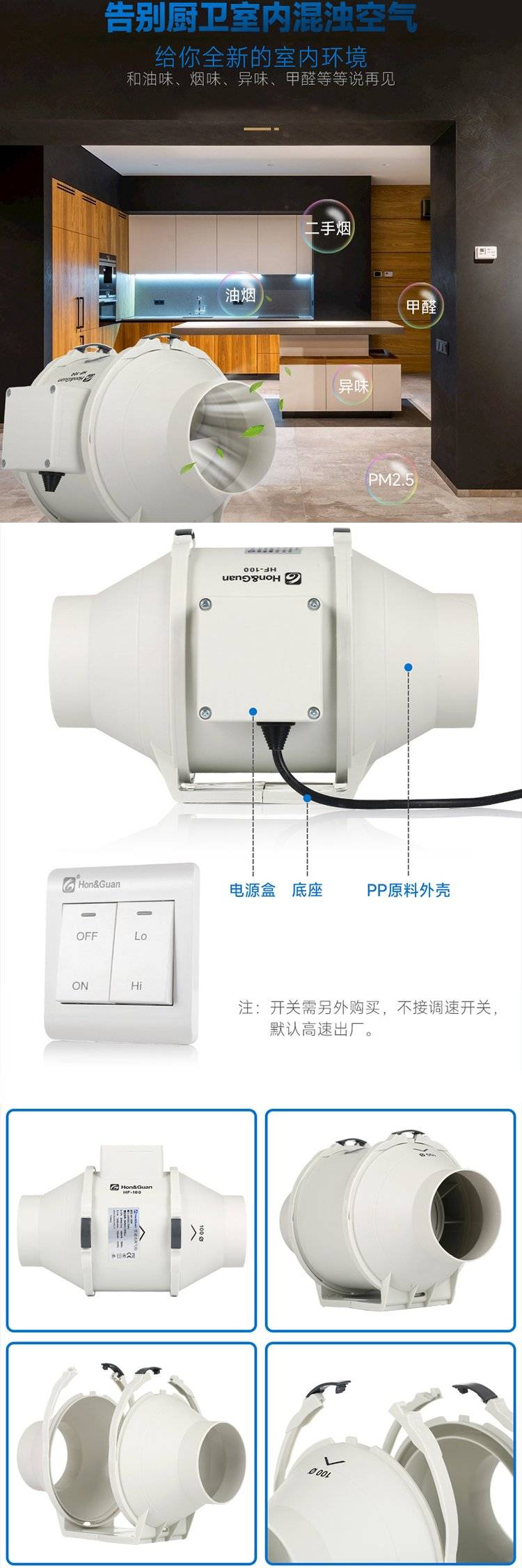 鸿冠 圆形管道 斜流扇叶 大风量 不变形 卫生间换气扇