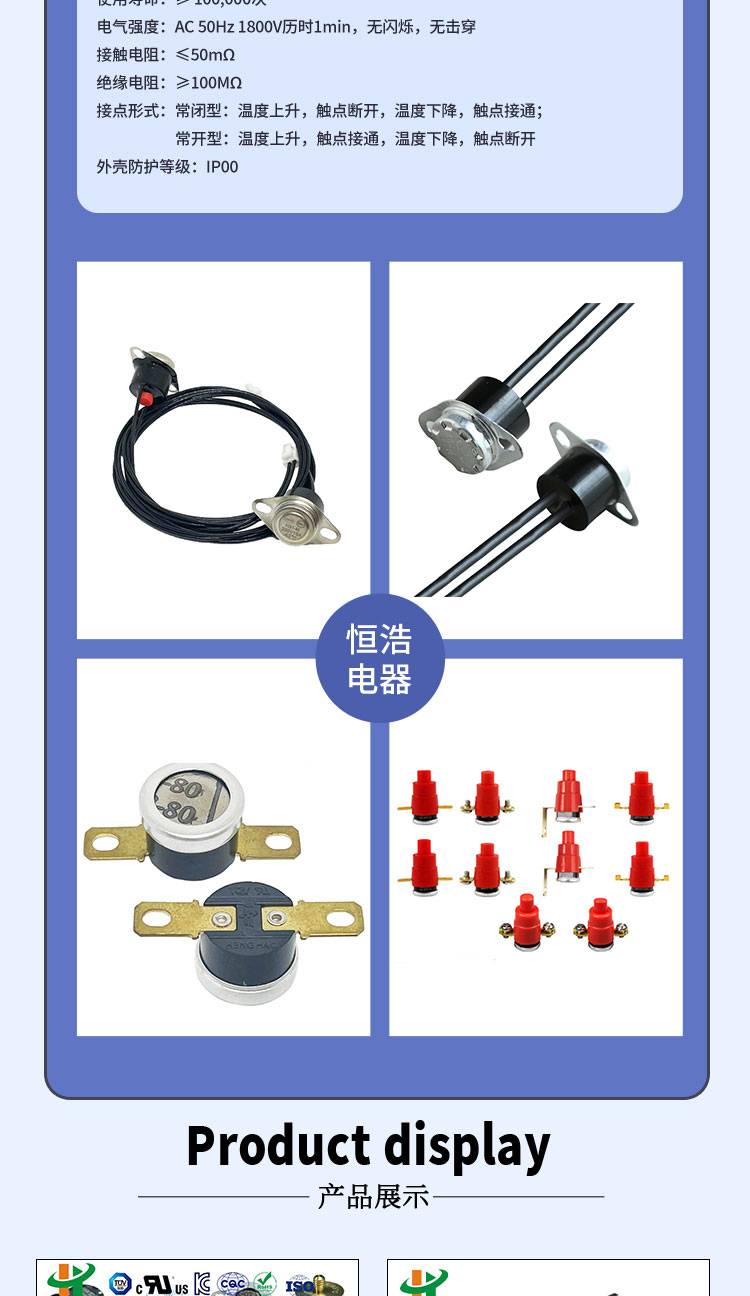 Thermal melting rubber temperature switch ksd9700 closed ceramic thermal protector henghao