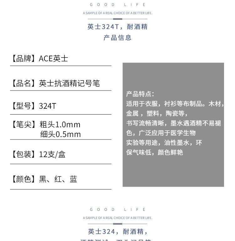 手帐可用水性记号笔 英士324T抗酒精标记笔 细头0.5粗头1.0