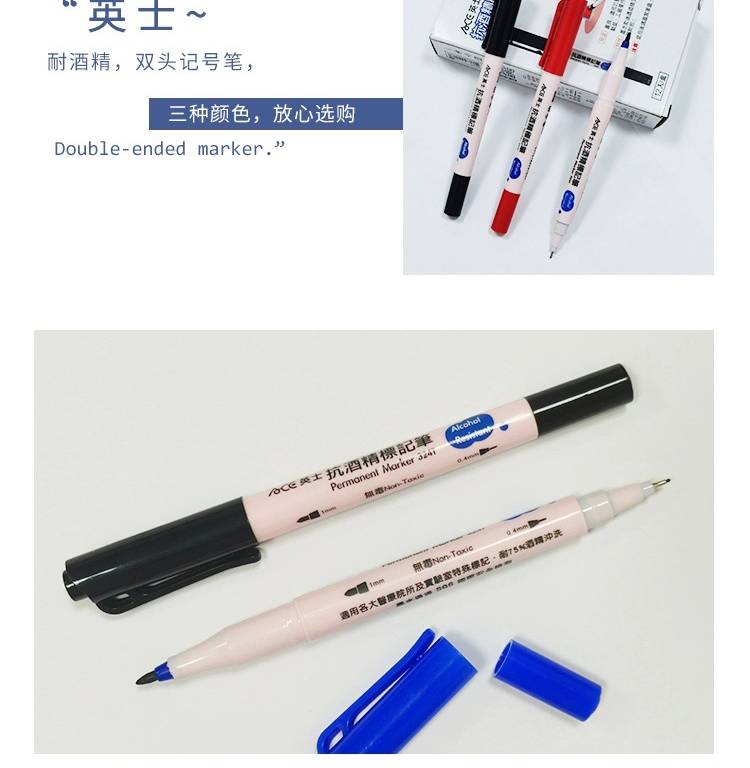 英士324T双头粗细荧光彩色记号笔 医学生物实验用 抗酒精