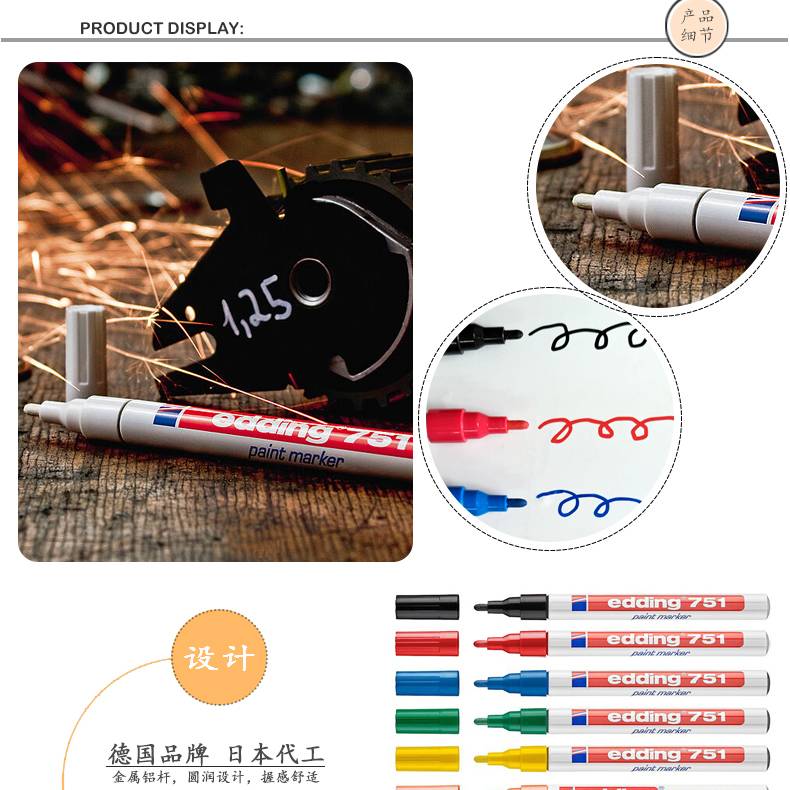 德国艾迪1MM耐医用酒精记号笔 耐高温耐油描金笔 旭恒
