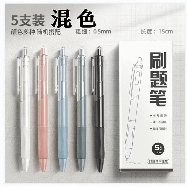 莫兰迪色小白笔刷题笔盒装速干ins风高颜值按动笔按压中性笔0.5