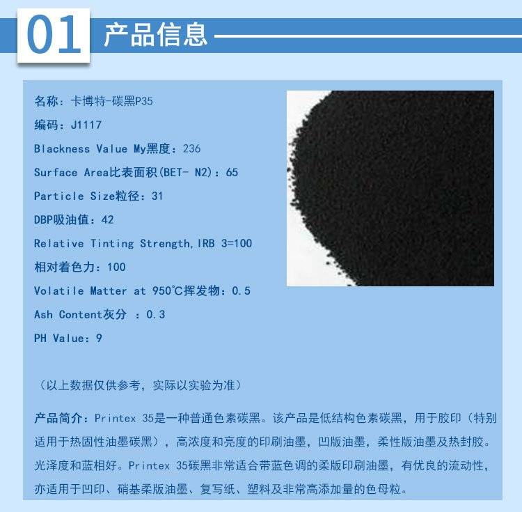 卡博特碳黑P35低结构色素光泽度和蓝相好用于胶印凹印复写纸